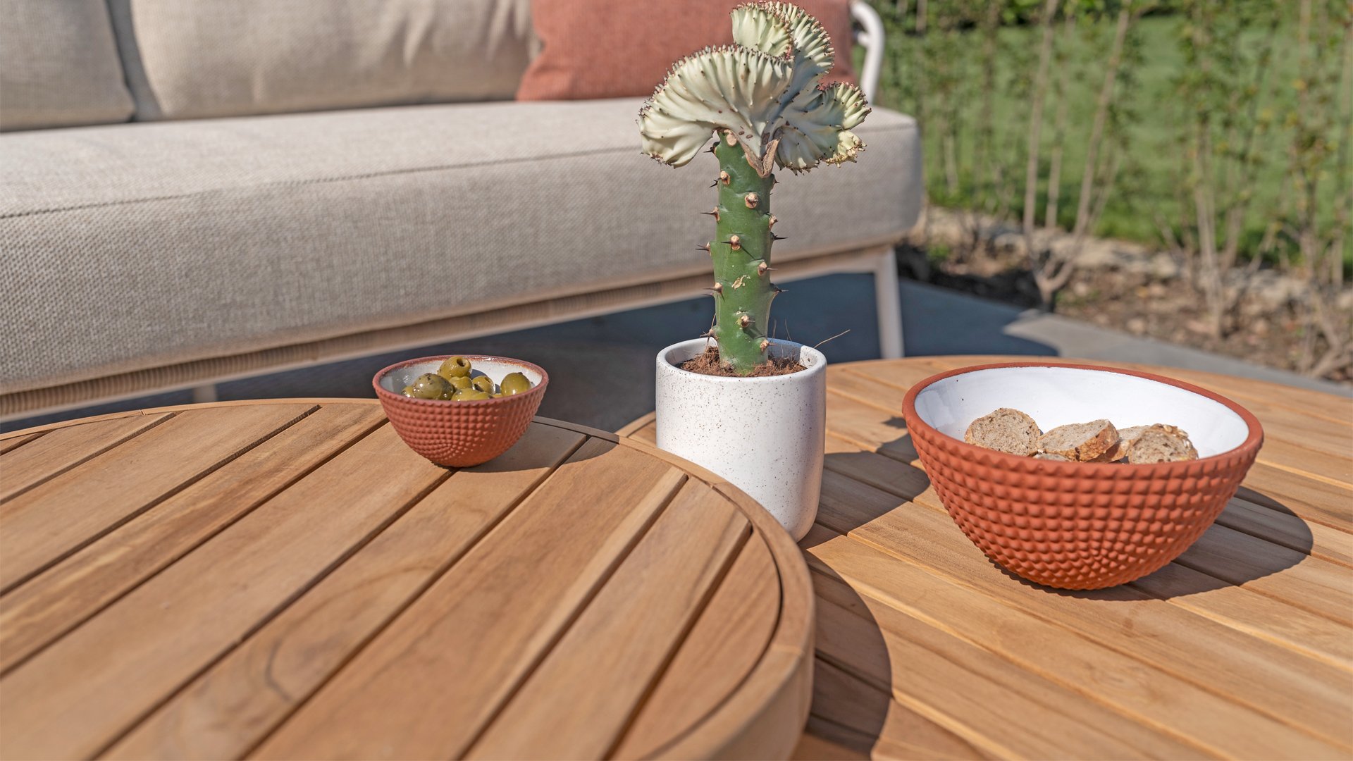 Teak is a natural product and particularly suitable for outdoor use. It is resistant to pests and mold and can withstand sun, rain, and snow. Over time, teak develops a silver-gray patina. Teak is a robust material and requires little maintenance. If you prefer the original color of your teak, you can easily prevent it from turning gray by regularly using our care product. You can also clean teak with green soap. We offer a warranty on all manufacturing and construction defects. This does not cover the working of teak. If you choose teak, we expect you to appreciate these qualities. Hairline cracks that may develop, knots in the teak, and rough surfaces or irregular discoloration over time are not covered by our warranty. These characteristics give teak its unique character and appearance; they are part of its natural properties. Be careful with a flowerpot or vase on your teak garden table, as this can cause stubborn rings or color variations. Imperfections are common; these imperfections are characteristic of this product. These irregularities can never give rise to a claim, warranty, or complaint. This is a sign of originality!