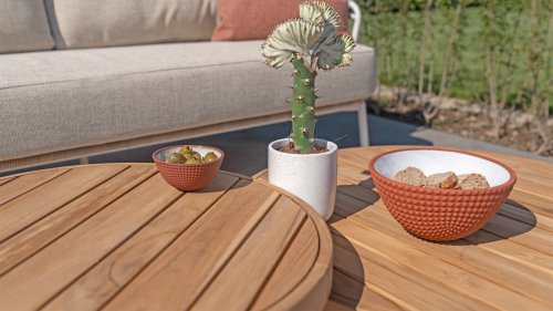 The 4 Seasons Outdoor Finn coffee table series made of teak wood adds a touch of class and functionality to your outdoor space. These coffee tables can complement a large part of our lounge sets. Teak wood combines perfectly with many materials and colors. Create a set with this 4SO Finn coffee table, choose a combination of the large and/or small round variant or the rectangular one so you have a unique addition to your lounge set. Also, check the larger variant: Finn Ø 80cm.
