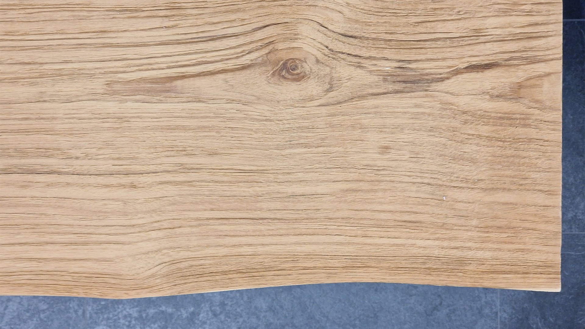 The 4Seasons Robusto tabletop has a light rustic and rough finish. The finish on the long side immediately catches the eye. They are not finished straight, but have retained their original shape, giving it a kind of log finish. As a result, no two tables are the same, and each tabletop has its unique appearance.