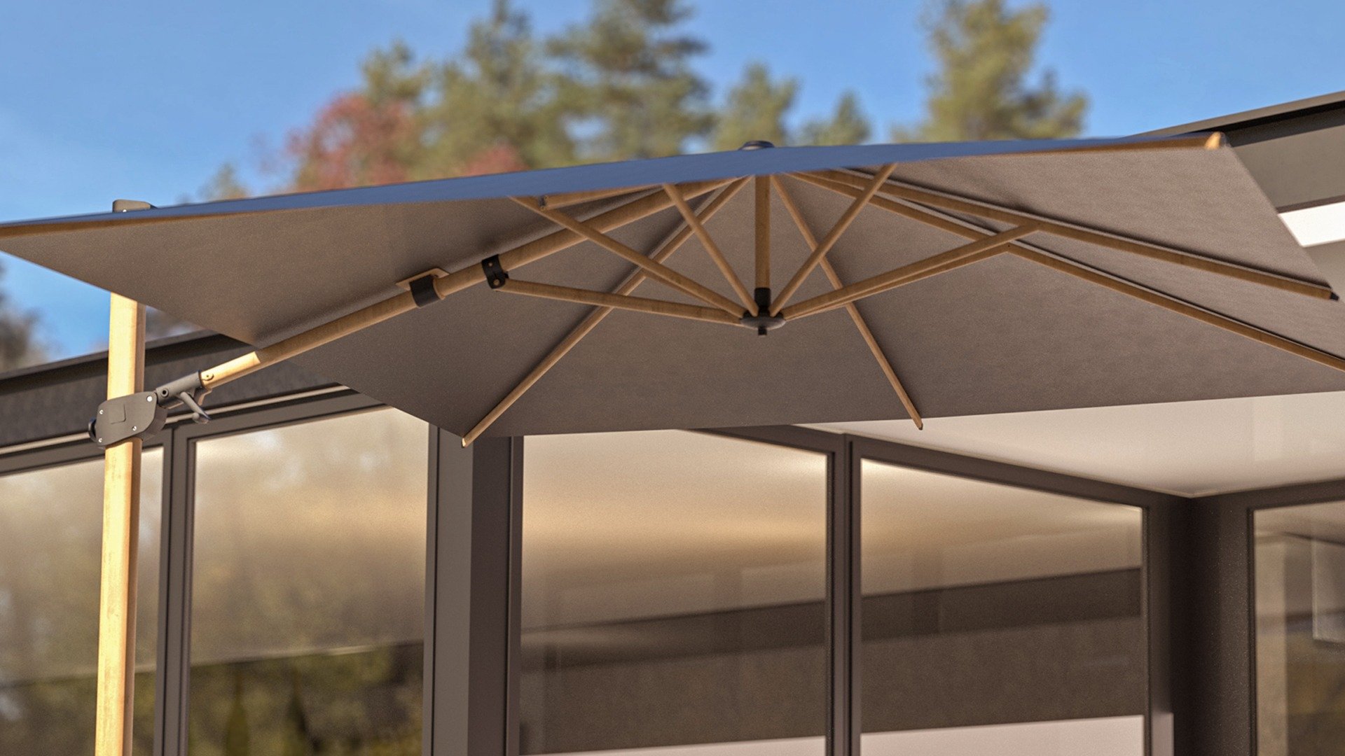 4 Seasons Outdoor gebruikt voor zijn parasols solefin stof voor zijn ongeëvenaarde kwaliteit en duurzaamheid en is daarnaast ook zeer kleurvast. Het doek is bestand tegen zowel chemische als milieuverontreinigende stoffen en het is ongelooflijk gemakkelijk te onderhouden. Meest voorkomende vuil en vlekken kunnen eenvoudig worden gereinigd met water en in sommige gevallen met milde zeep.
