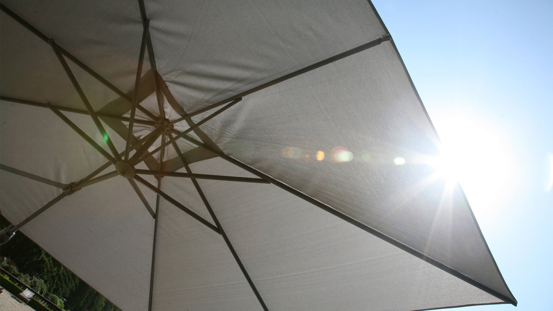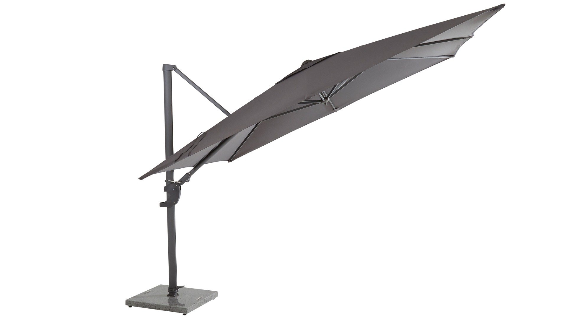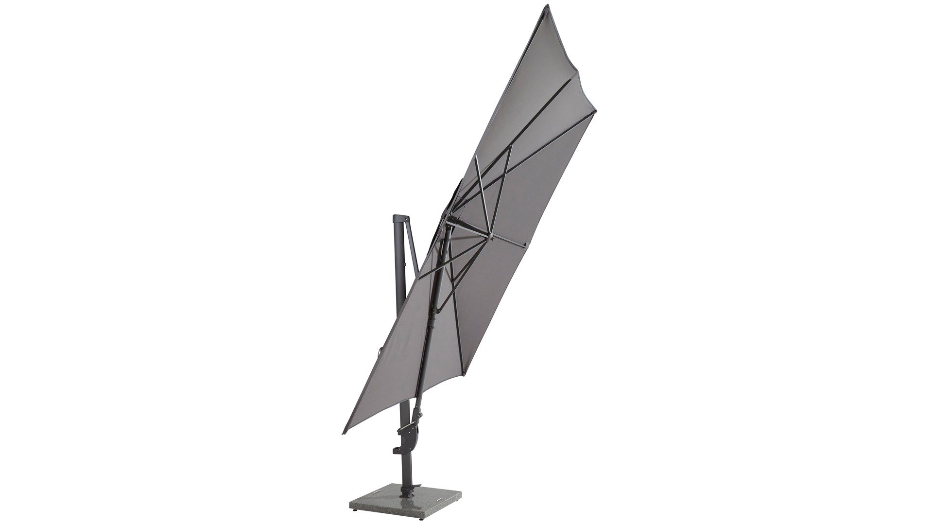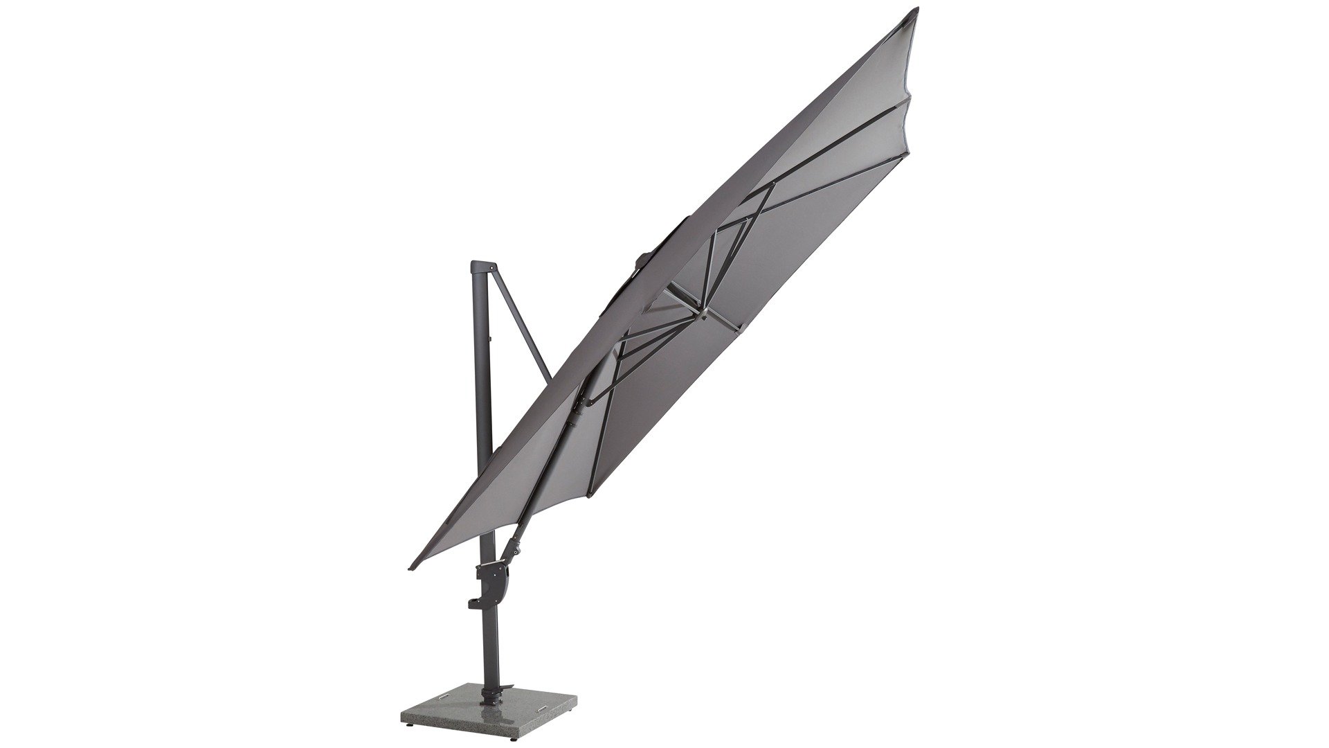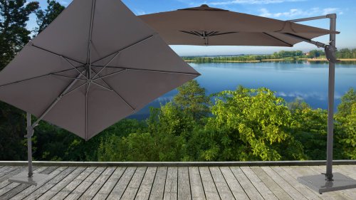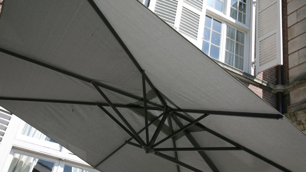 The 4 Seasons Outdoor Horizon parasol is the ultimate free-arm parasol. Easy to rotate 360° thanks to the foot pedal. All models can tilt backwards to an angle of almost 90 degrees. The parasol fabric is made of fully weather-resistant polyester fibers. The frame is made of aluminum and is available in a wide range of finishes. For the 4Seasons Horizon, the Horizon 84kg base is suitable. The Horizon hanging parasol model can also be tilted horizontally to the left or right!
