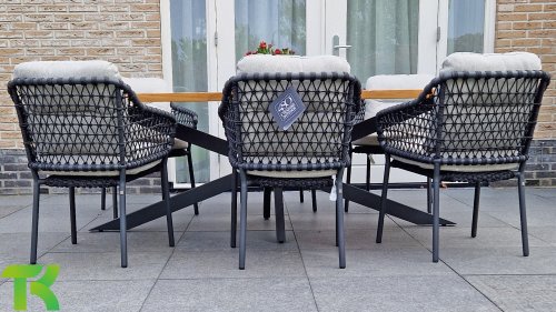 The natural beauty of Jura The 4 Seasons Outdoor Jura Olive combines olive-colored tones with a subdued taupe color of the knotted rope. Beautiful next to a teak table and you can also stack it. Take a seat and enjoy. Experience the perfect combination of comfort, natural appearance and modern design with the 4SO Jura stackable dining chair Olive. This chair comes with cushions included. The Jura boasts an attractive olive rope weave and an elegant olive stainless steel frame. We also offer the Jura in anthracite: 4 Seasons Outdoor Jura Anthracite, exclusive to 4 Seasons Outdoor Shop!