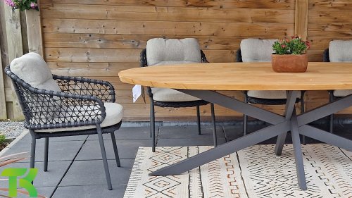The Taste by 4Seasons Prado Ellips can certainly be called a work of art. Just look at how artistically that leg structure is put together. The thick teak wood top has an angled edge and gives the table a sense of lightness. It can be combined with our entire collection of garden chairs. Also available with anthracite, teak, latte, or terre base: