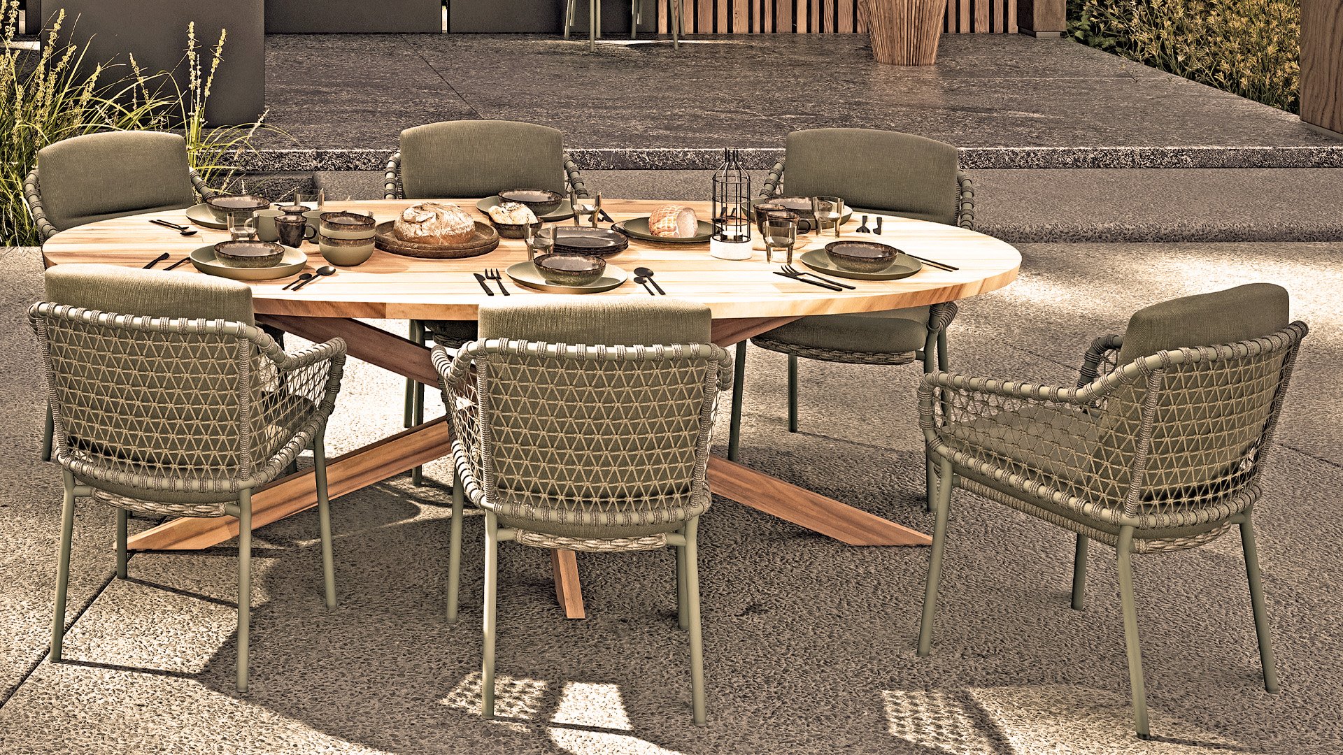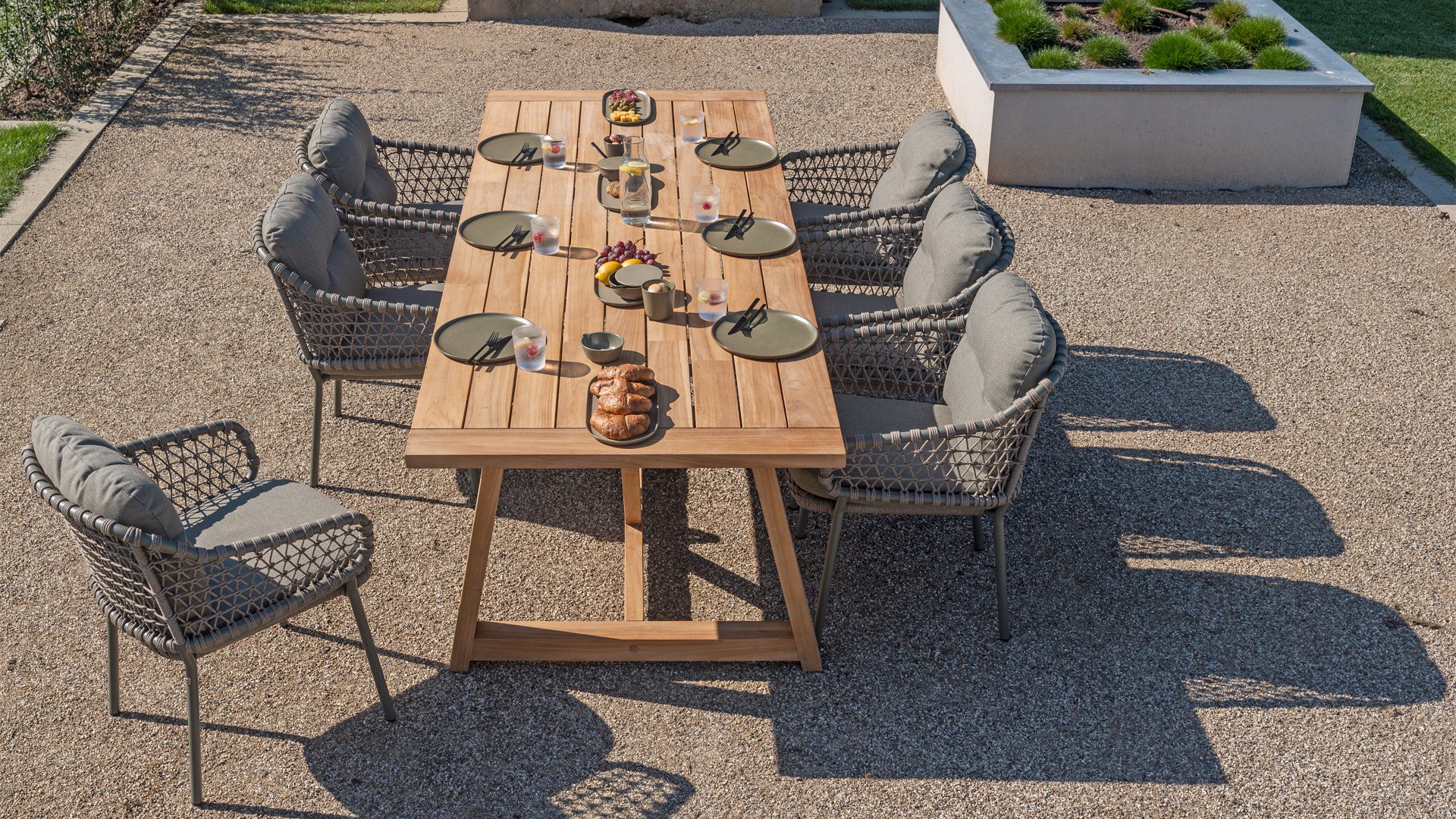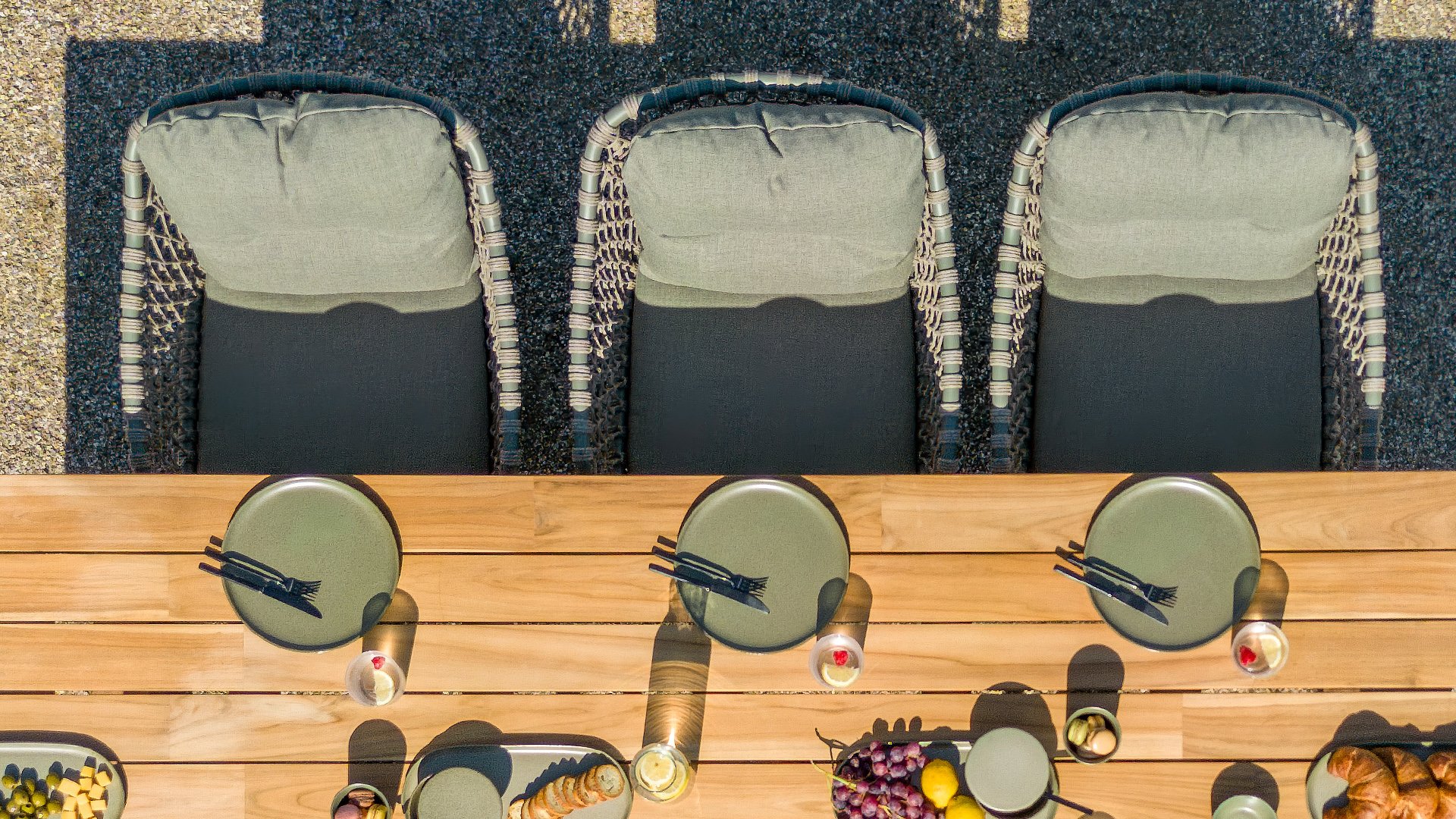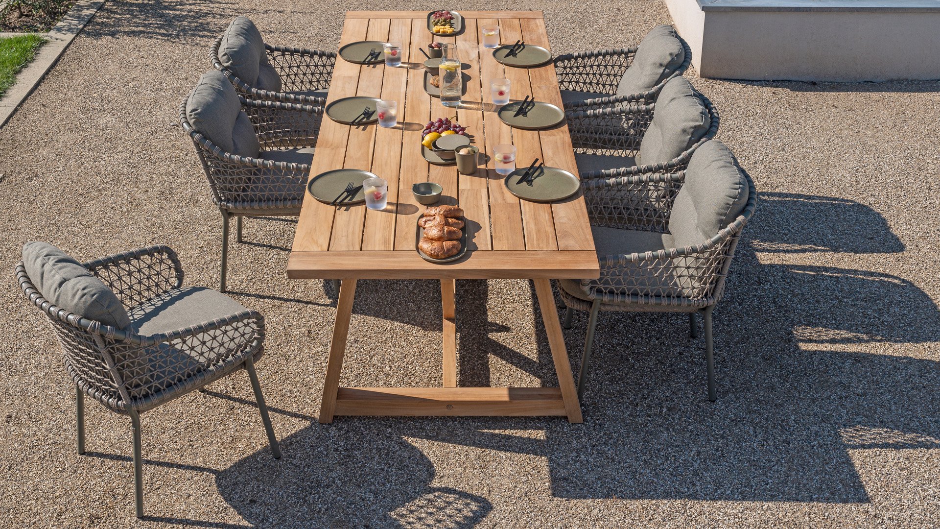 Olefin cushions feel comfortable—almost like the sofa or chairs you have indoors. This is because nearly all our cushions are covered with Olefin fabric. This fabric has a number of unique properties. The raw material used to produce Olefin is oil. The dye is added at an early stage, making it part of the fiber’s core. This makes the fabric colorfast, UV-resistant, and water-repellent. For that reason, Olefin is also used in technical sportswear and the automotive industry.