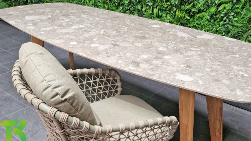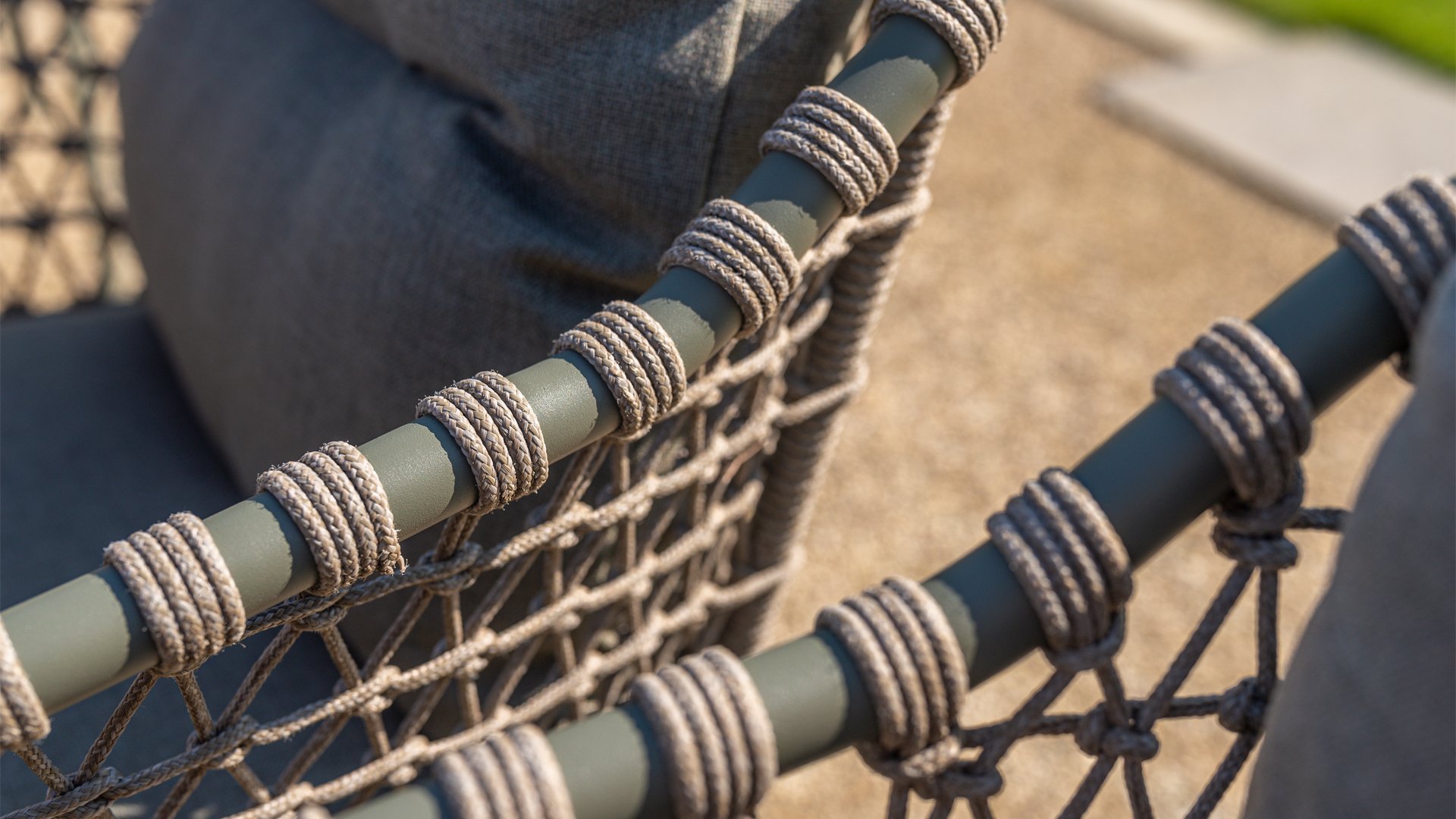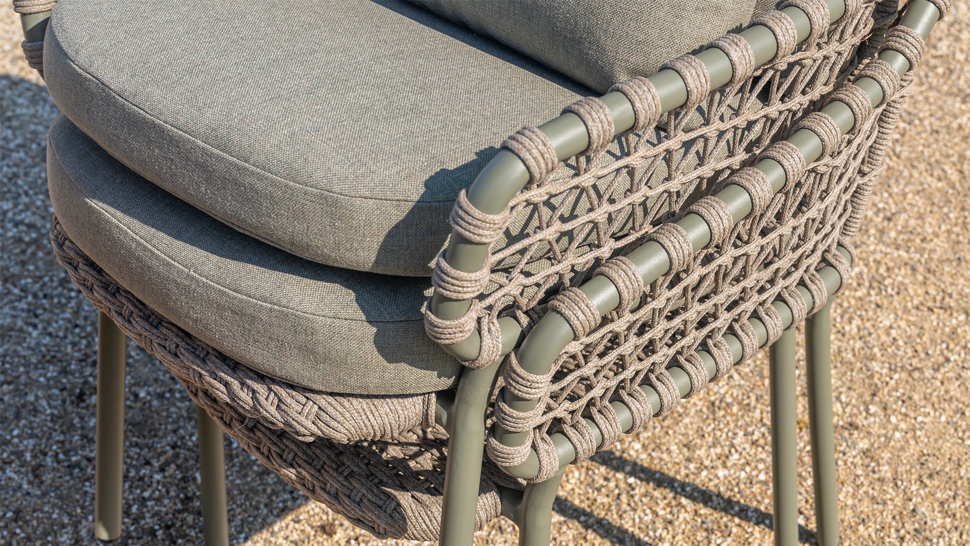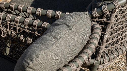 This beautiful material is perfect for outdoor use, as 4SO Rope is not just an ordinary cord you would use to tie your shoes. 4 Seasons Outdoor uses very high-quality rope made of 100% SDP (Solution Dyed Polypropylene). This material is extremely strong and has a very low stretch percentage. Because polypropylene is oil-based, dirt and impurities hardly penetrate it—just like with our cushions. 4 Seasons Outdoor offers exclusive designs that use handwoven rope patterns and techniques.