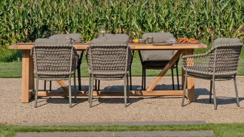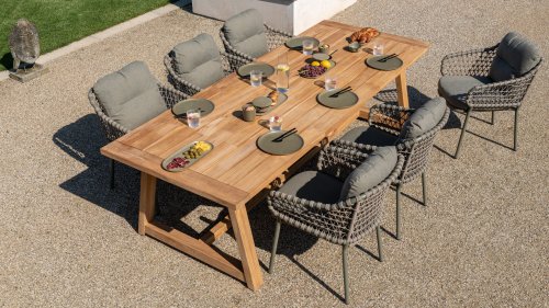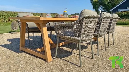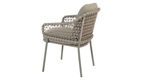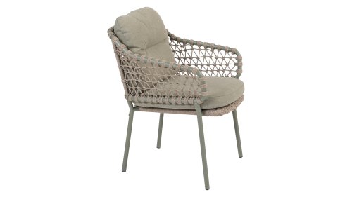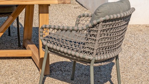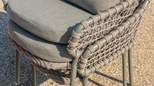 The natural beauty of Jura The 4 Seasons Outdoor Jura Olive combines olive-colored tones with a subdued taupe color of the knotted rope. Beautiful next to a teak table and you can also stack it. Take a seat and enjoy. Experience the perfect combination of comfort, natural appearance and modern design with the 4SO Jura stackable dining chair Olive. This chair comes with cushions included. The Jura boasts an attractive olive rope weave and an elegant olive stainless steel frame. We also offer the Jura in anthracite: 4 Seasons Outdoor Jura Anthracite, exclusive to 4 Seasons Outdoor Shop!