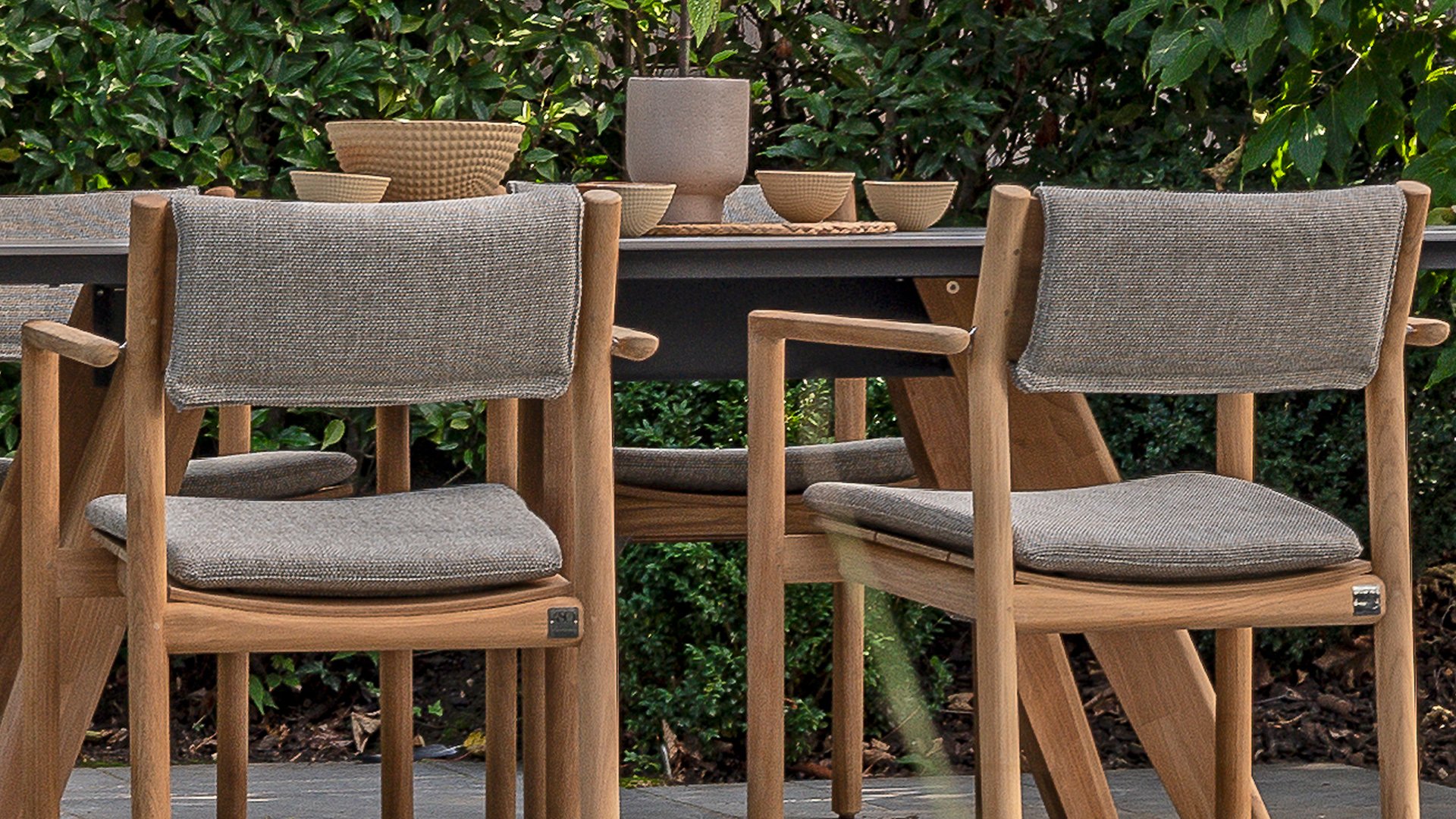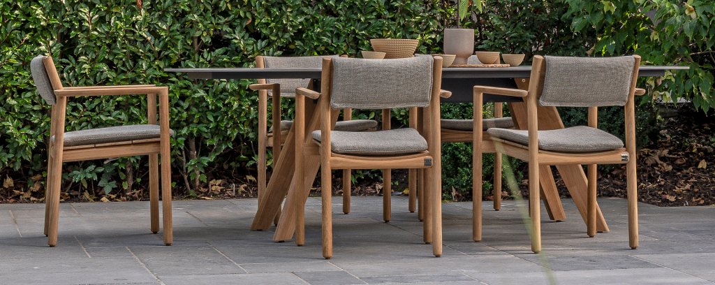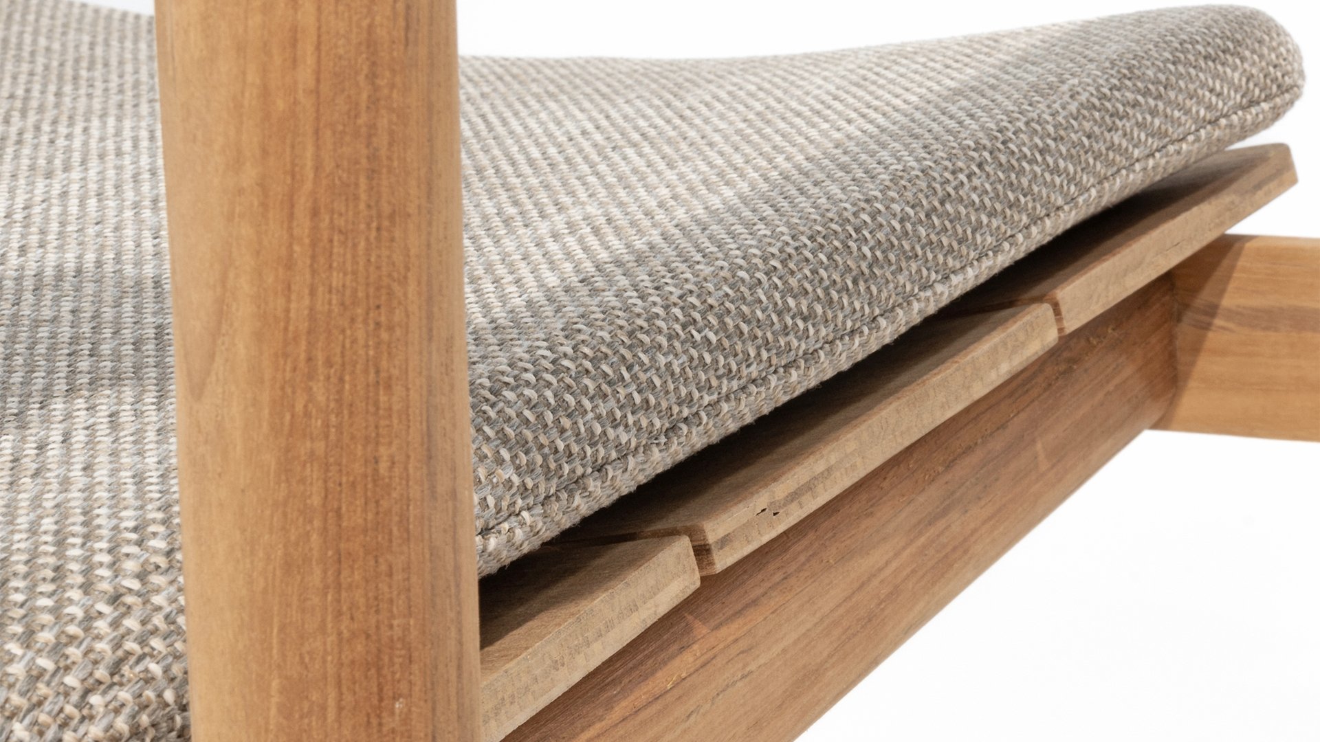 So much to see. It takes craftsmanship to create this Levi dining chair so beautifully. A teak chair to lick your fingers, so beautiful. With matching cushions and a stacking function, Levi is one of the gems of our collection. The 4 Seasons Outdoor Levi stackable dining chair offers a beautiful combination of style and functionality for your outdoor space. A refined chair, expertly made from A-grade teak wood, with a surprising seating comfort due to the comfortable seat cushion and removable back cushion.