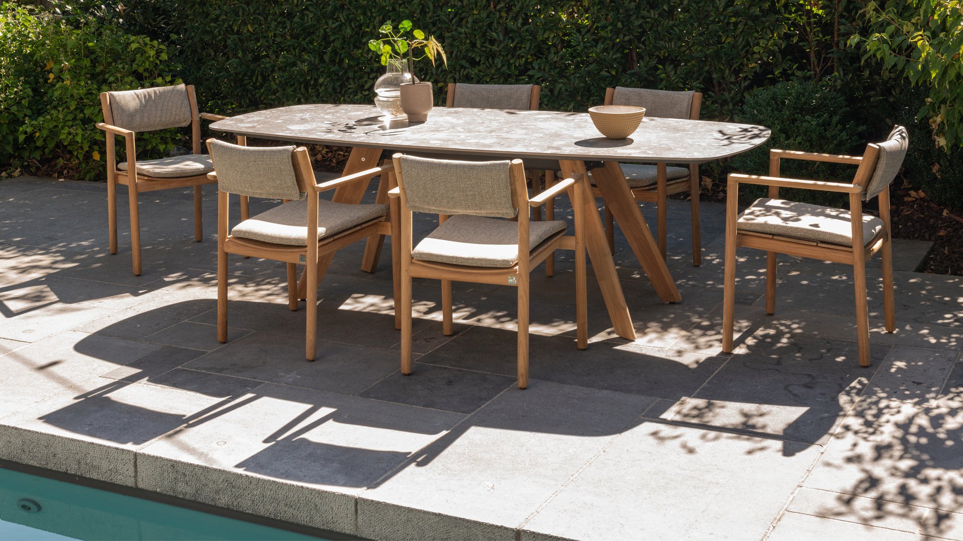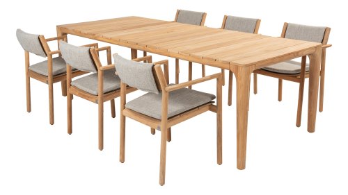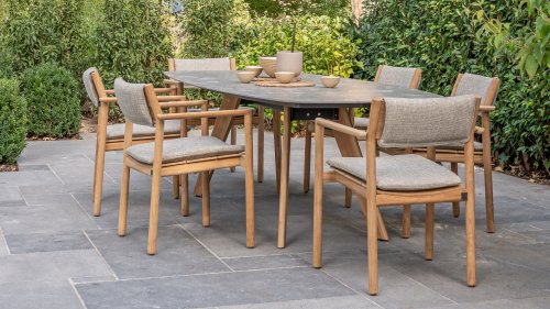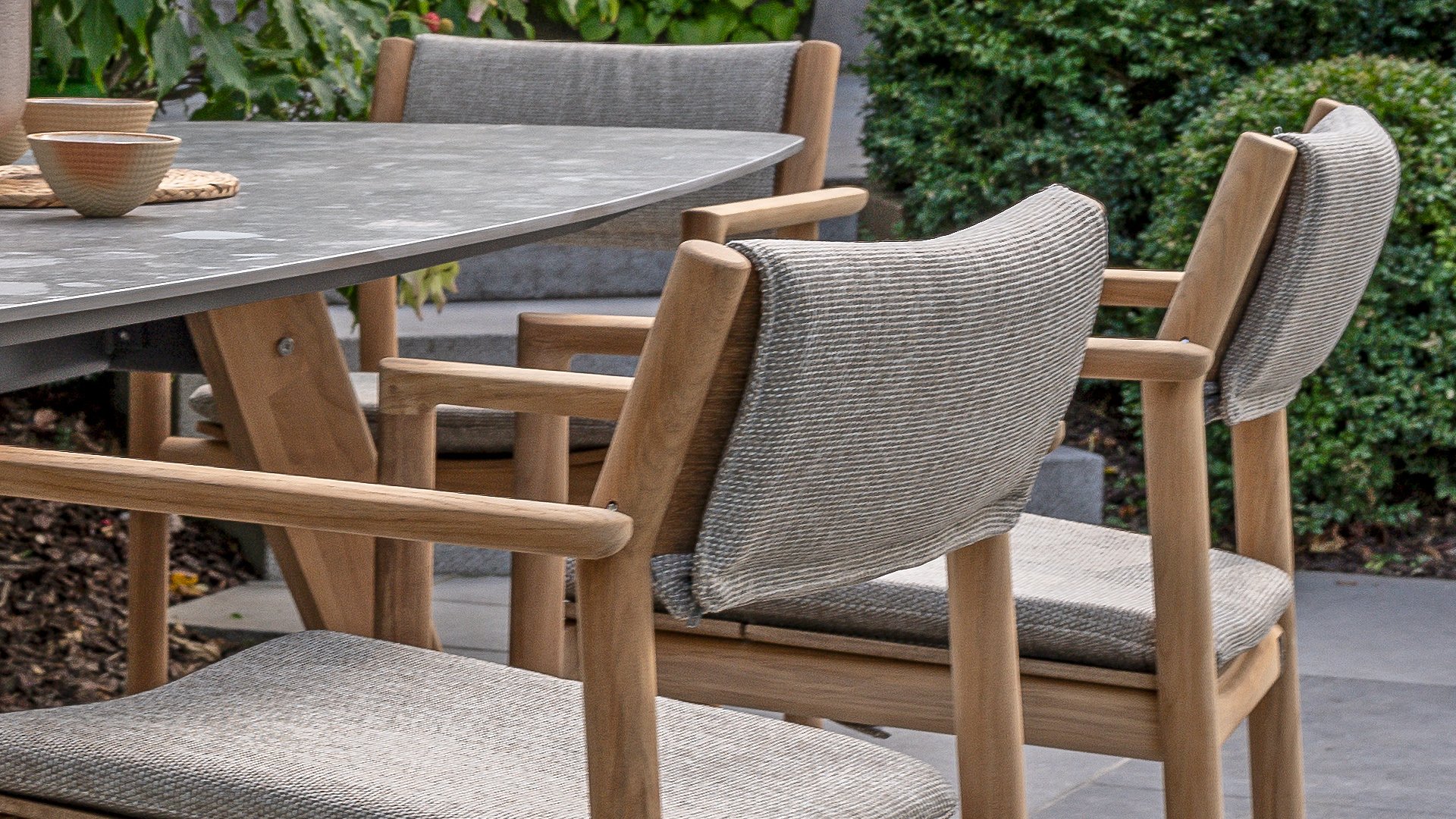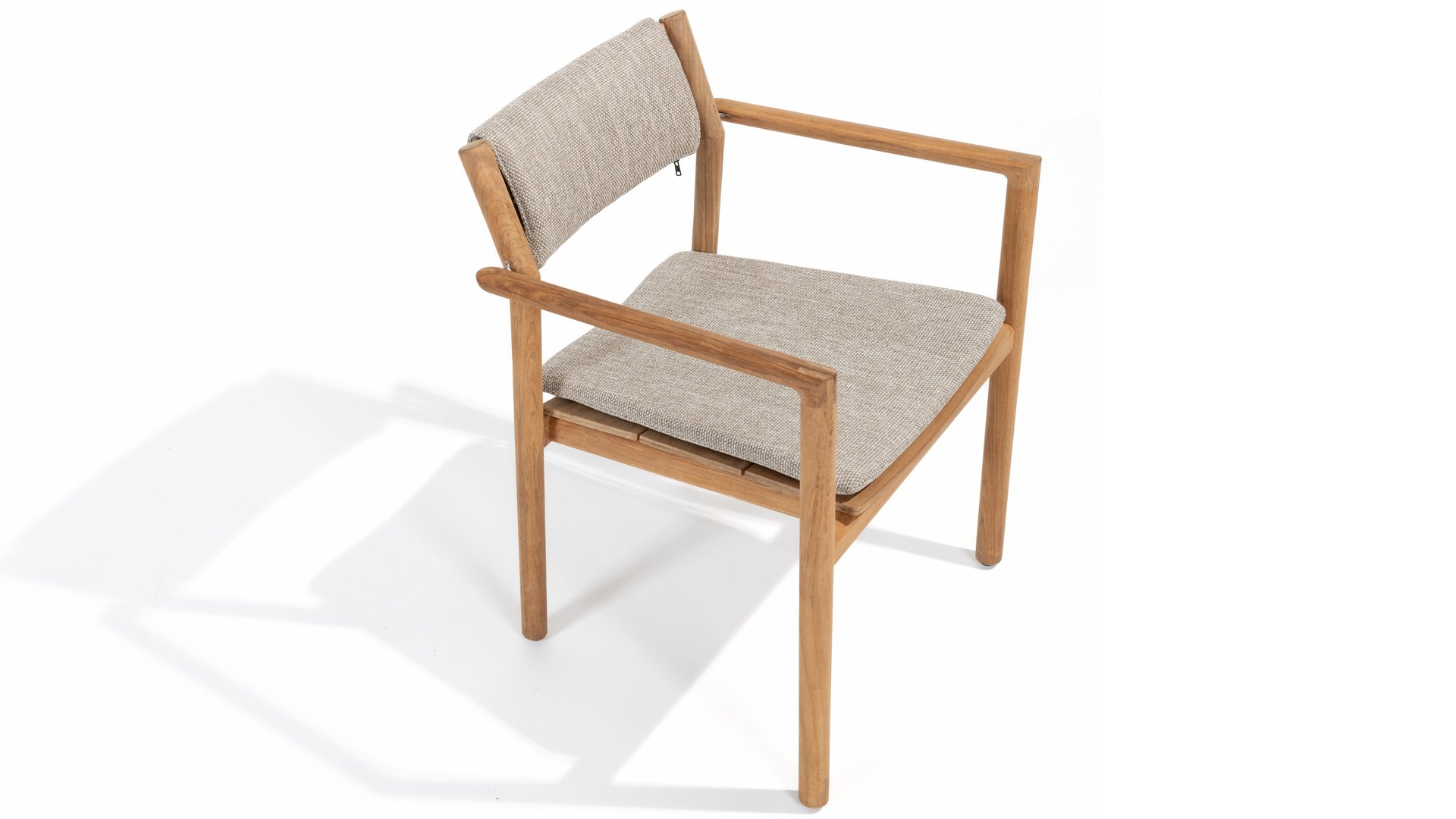 So much to see. It takes craftsmanship to create this Levi dining chair so beautifully. A teak chair to lick your fingers, so beautiful. With matching cushions and a stacking function, Levi is one of the gems of our collection. The 4 Seasons Outdoor Levi stackable dining chair offers a beautiful combination of style and functionality for your outdoor space. A refined chair, expertly made from A-grade teak wood, with a surprising seating comfort due to the comfortable seat cushion and removable back cushion.