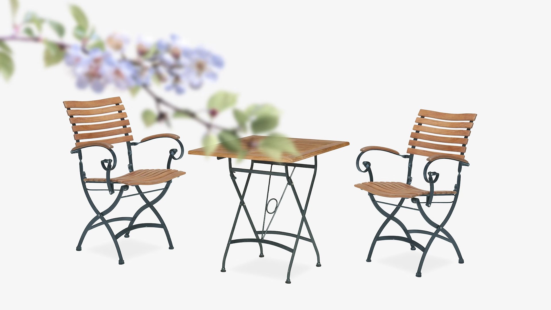 The ergonomic curves in the wood make the furniture much more comfortable than you might initially expect. Besides the excellent practical properties, the set is extremely decorative. Your garden instantly gets a picturesque appearance, and storing the furniture is very easy since each garden piece is foldable, making it very compact.