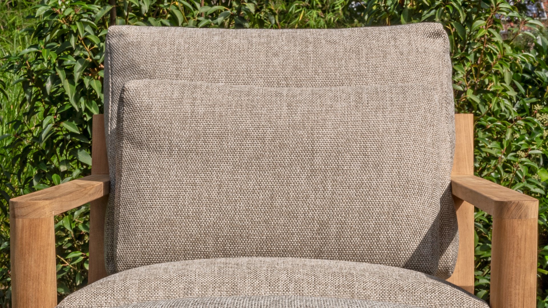 You don't need to chemically treat or maintain our weather-resistant cushions. However, it is important to keep your garden cushions clean. Prevent rotting leaves from damaging the fabric, or prevent nasty stains caused by bird droppings. Garden furniture is meant to be enjoyed all four seasons, but not without having to look after it. We offer a warranty against weather influences; stains or user damage are not covered. Treat your garden furniture and cushions responsibly by using a protective cover and/or storing your cushions when not in use for extended periods.
