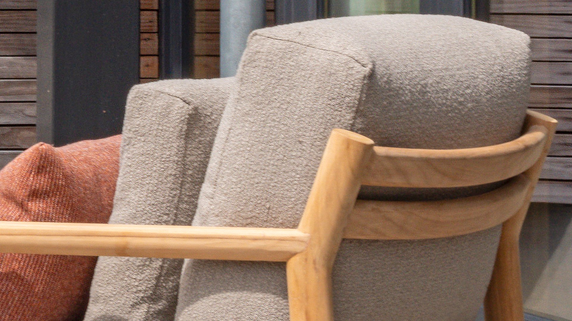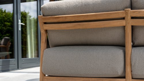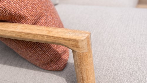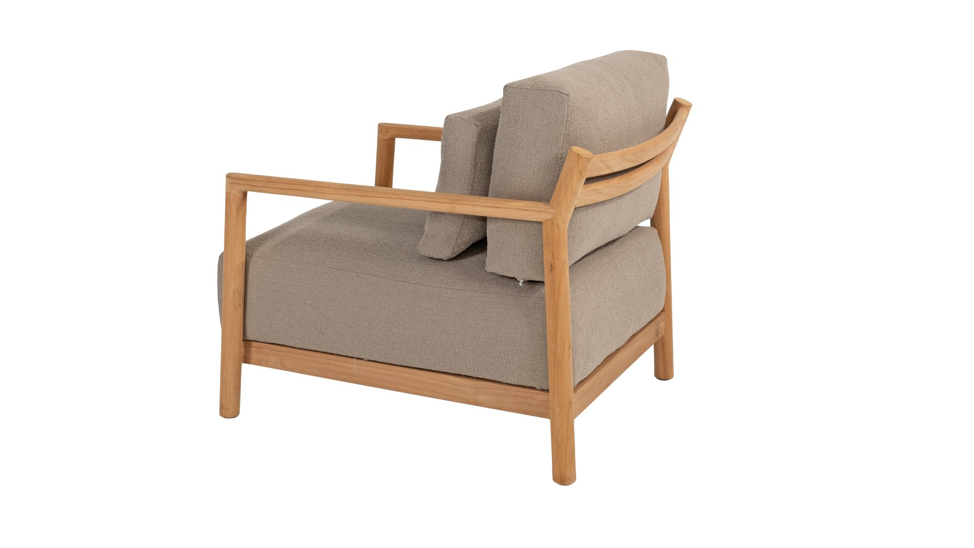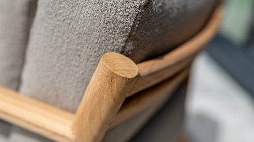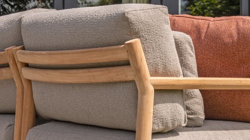 The stylish Marie lounge set stands out with its beautifully finished teak wood frame and the generous, extra thick cushions with Bouclé upholstery. The sofa offers ultimate comfort for the true lounge lover. For extra support, the sofa comes with additional lumbar cushions, further enhancing ergonomics and the lounge experience.