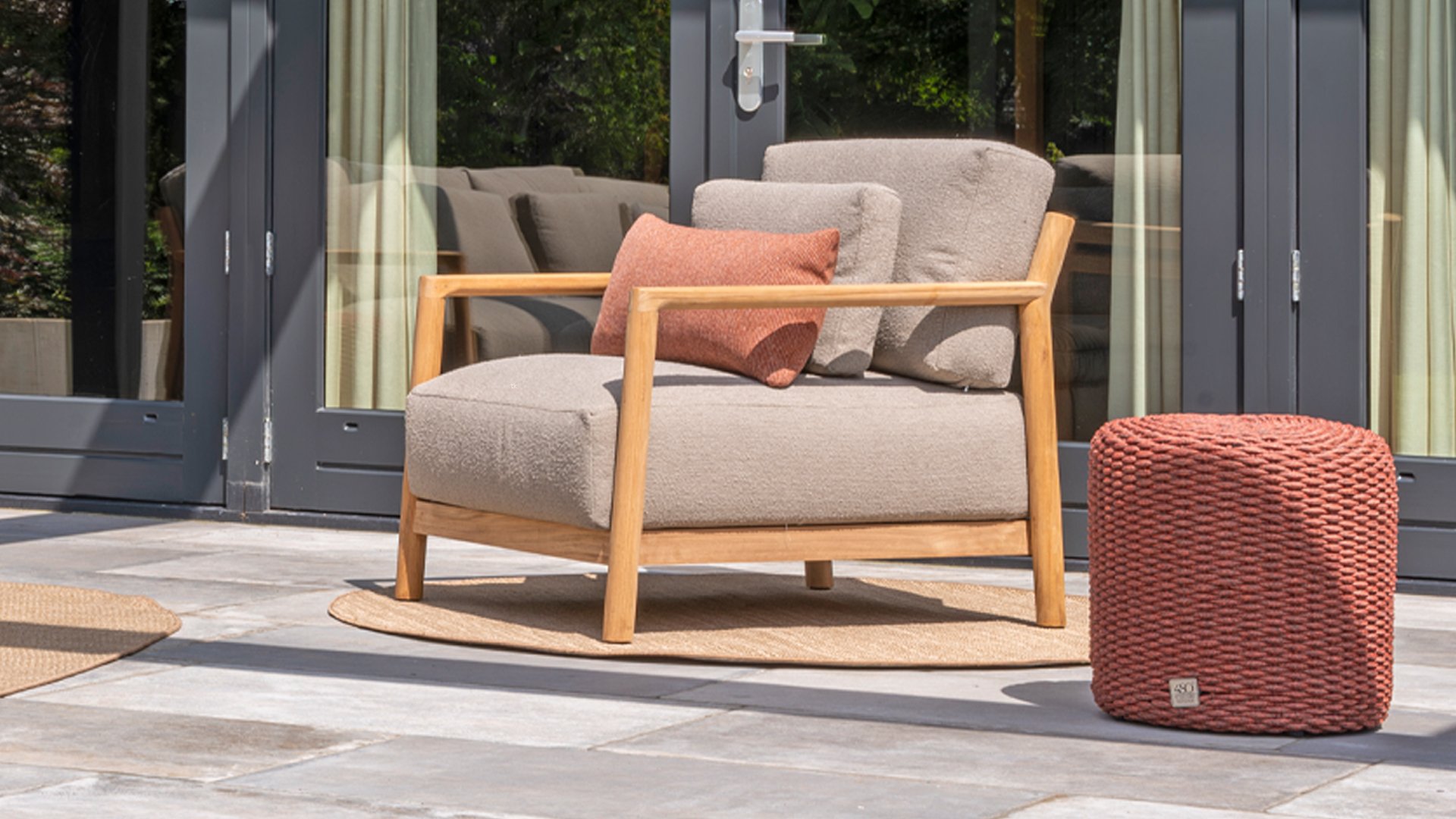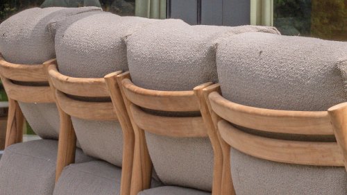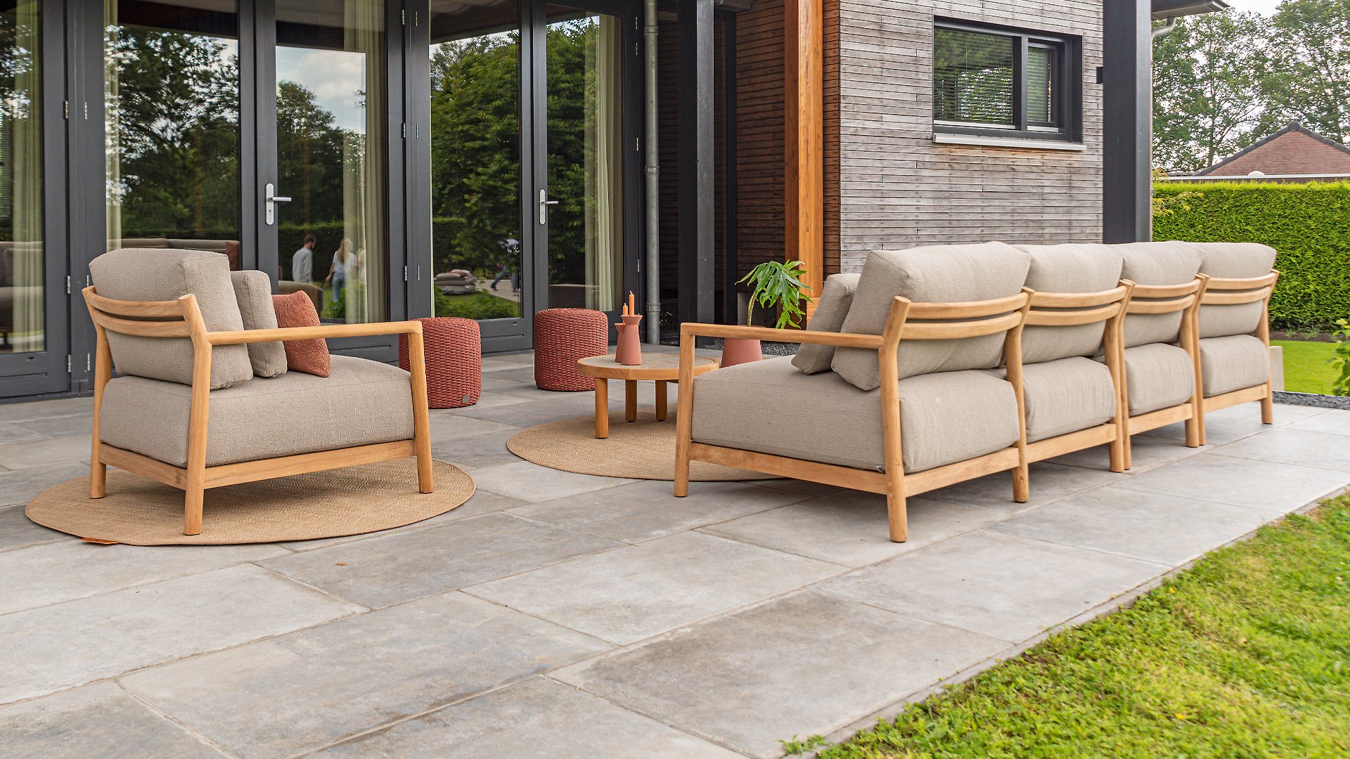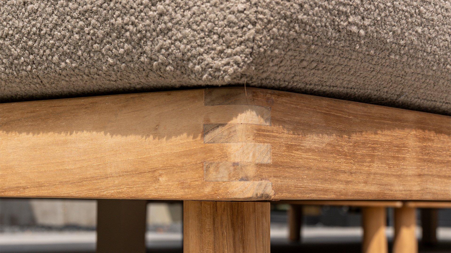 The stylish Marie lounge set stands out with its beautifully finished teak wood frame and the generous, extra thick cushions with Bouclé upholstery. The sofa offers ultimate comfort for the true lounge lover. For extra support, the sofa comes with additional lumbar cushions, further enhancing ergonomics and the lounge experience.