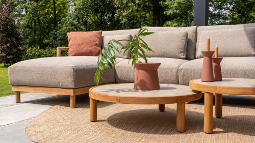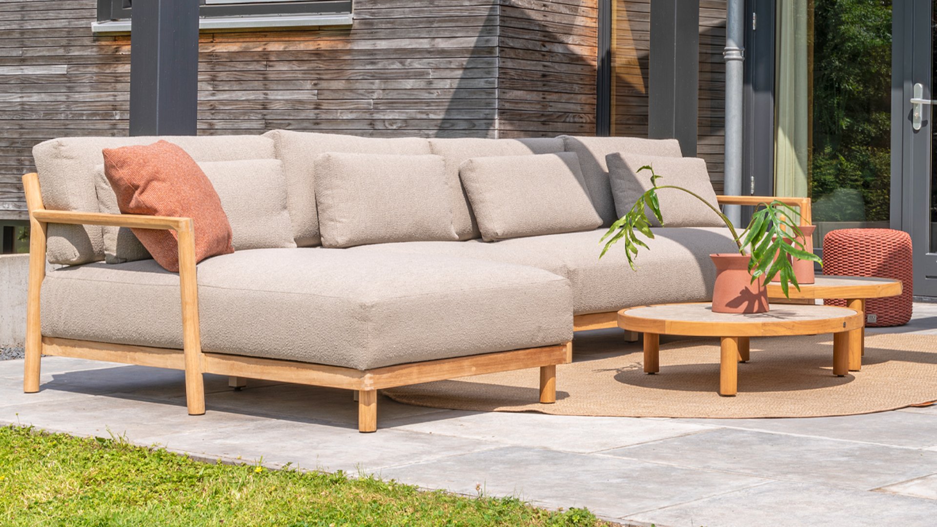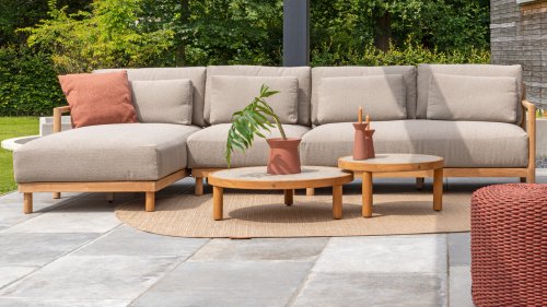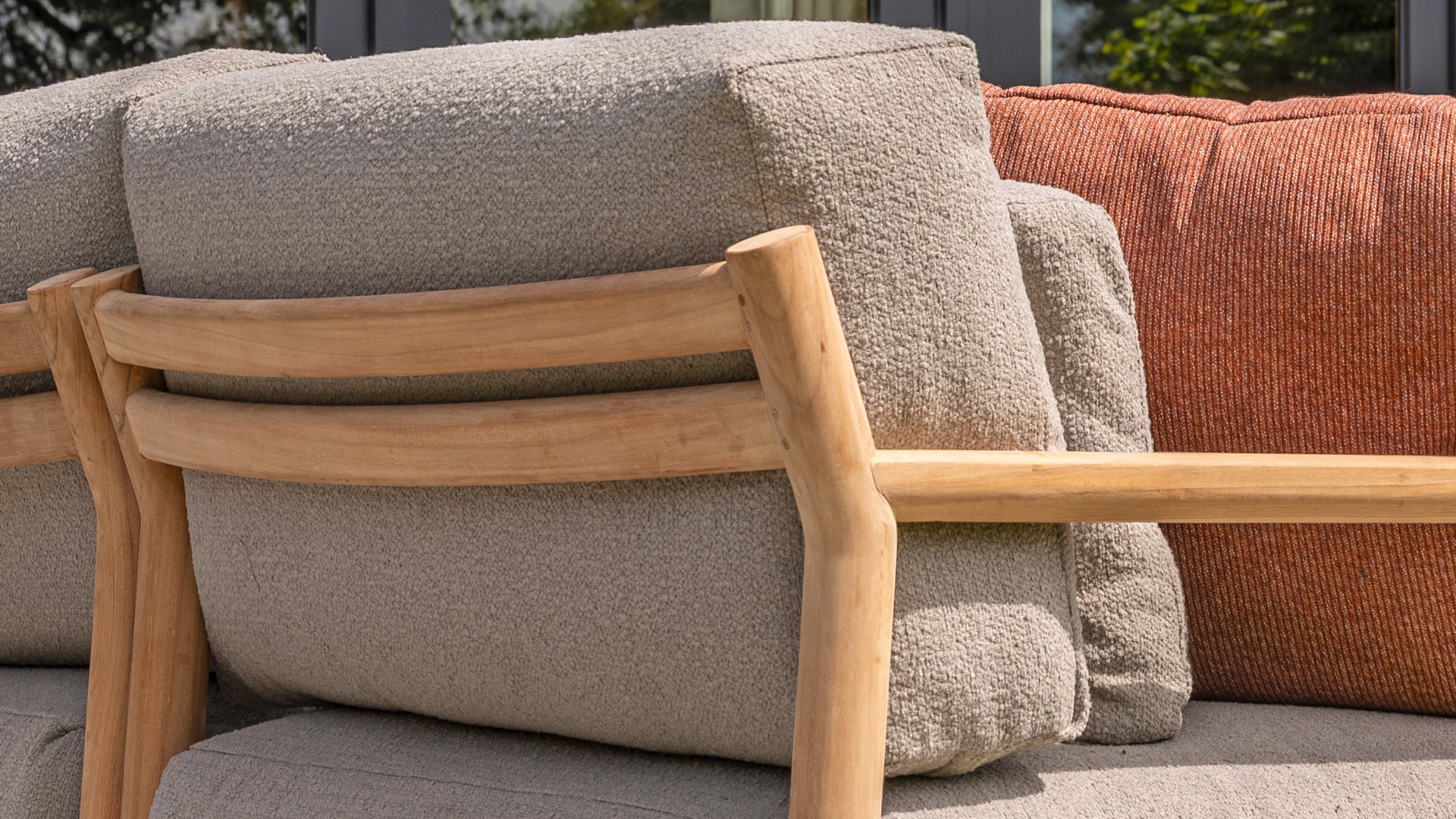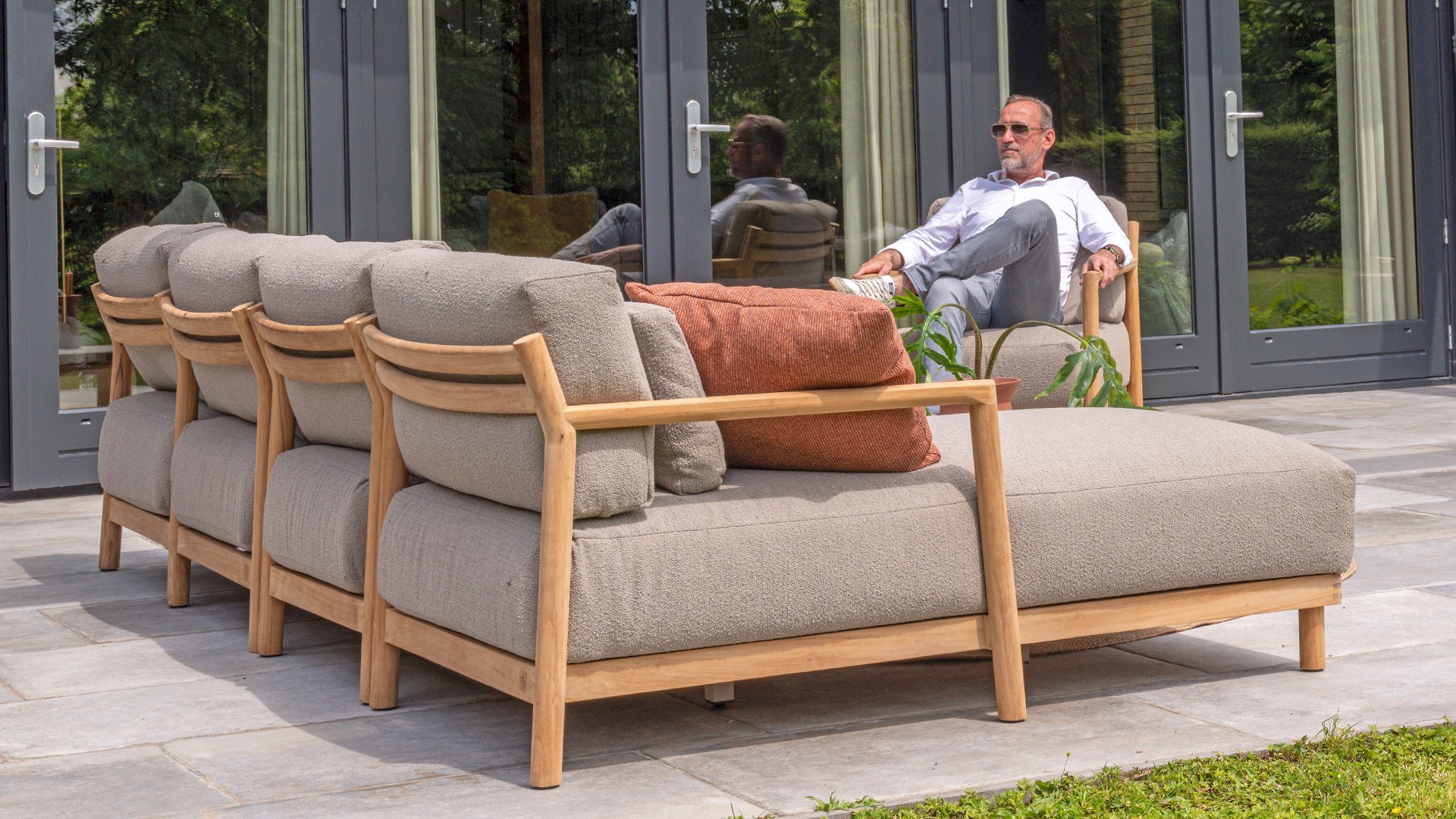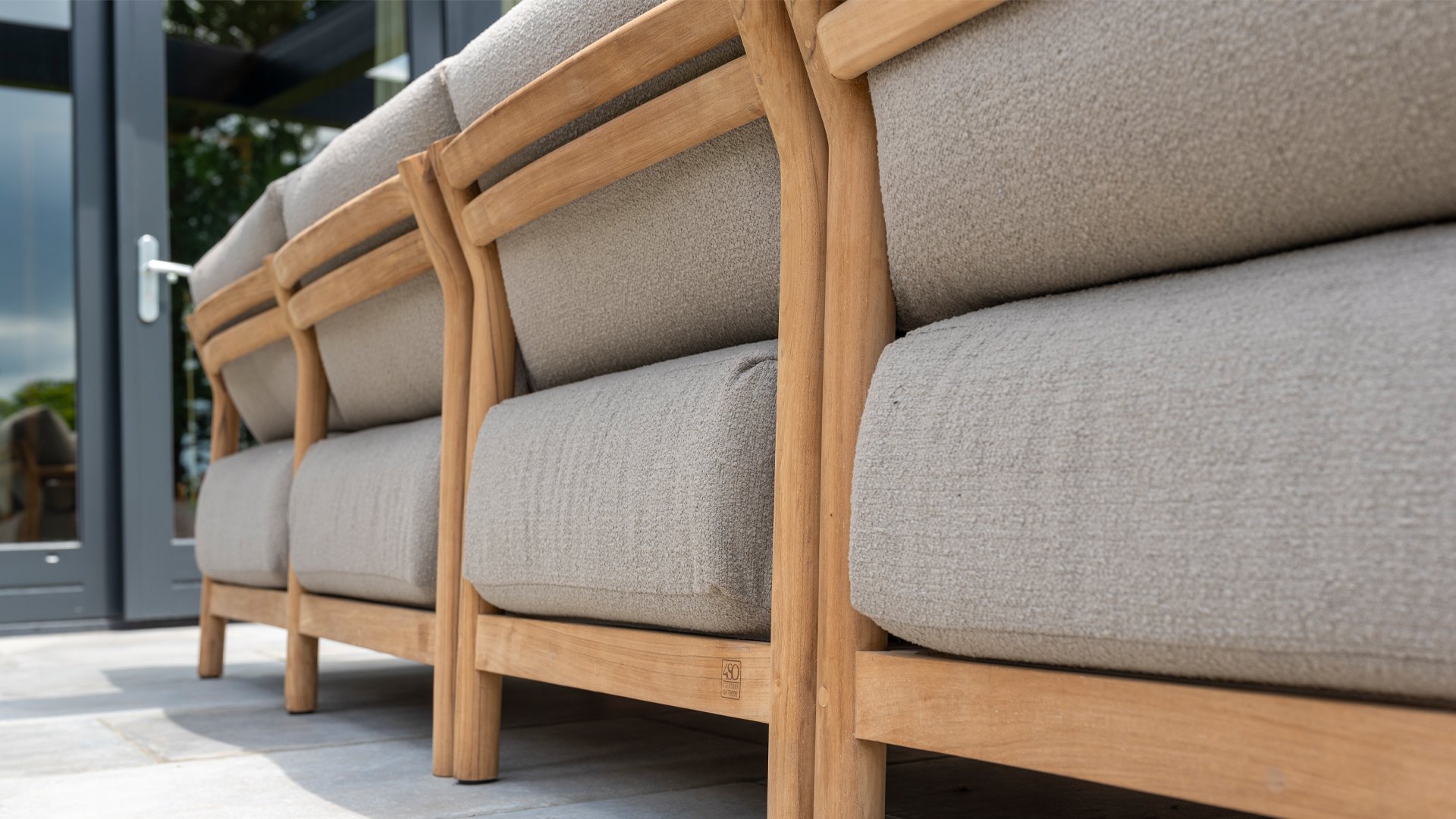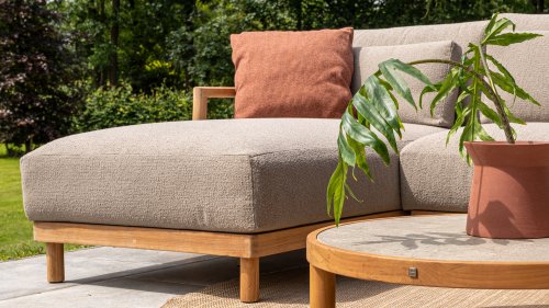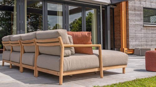 Admire Marie. Marie exudes peace, luxury, and class. The round design and the warm teak make the modular corner sofa easy to combine with various other materials but, of course, also with beautiful Marie lounge chairs. With its amazing seating comfort, you are guaranteed many summer days in your garden.