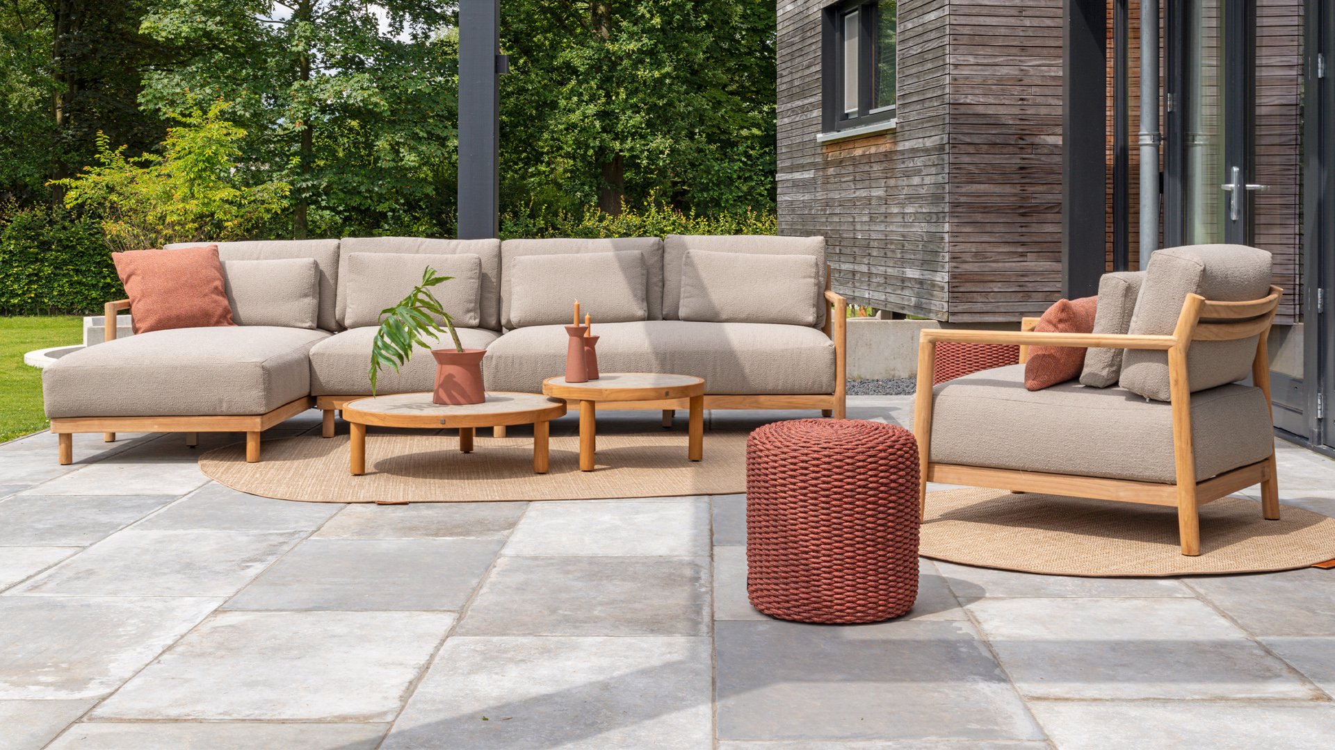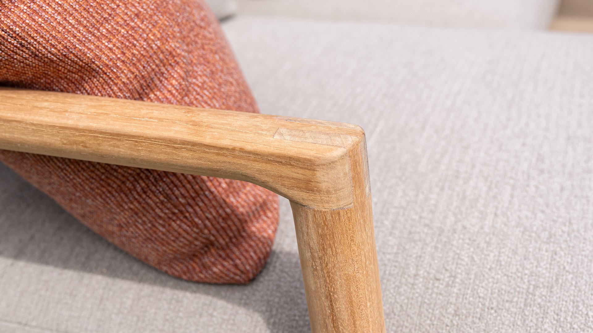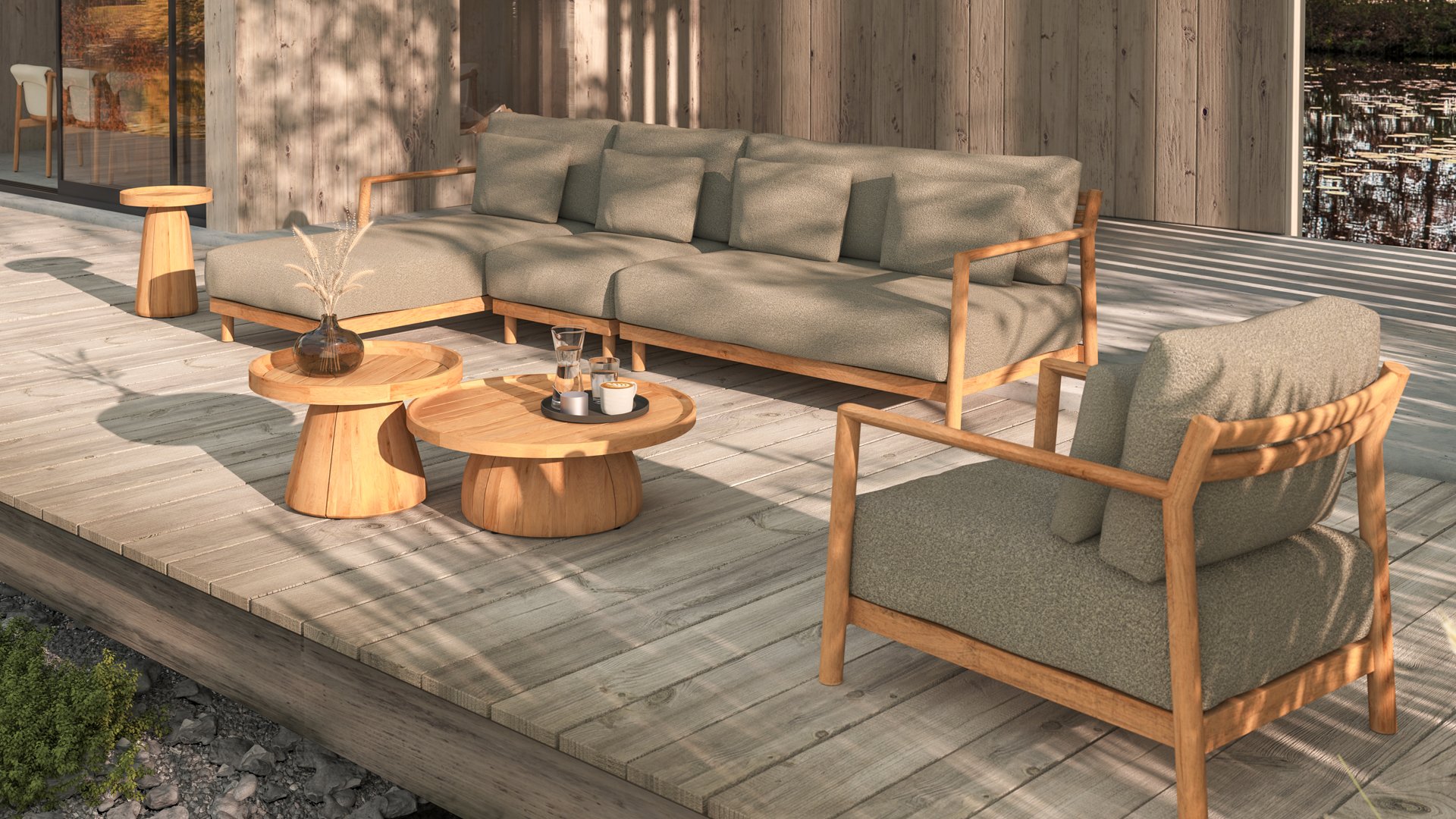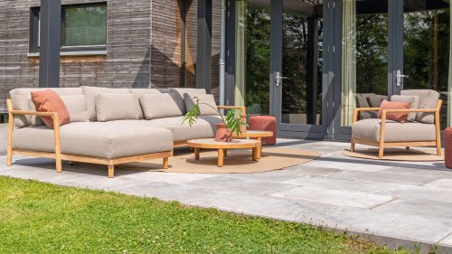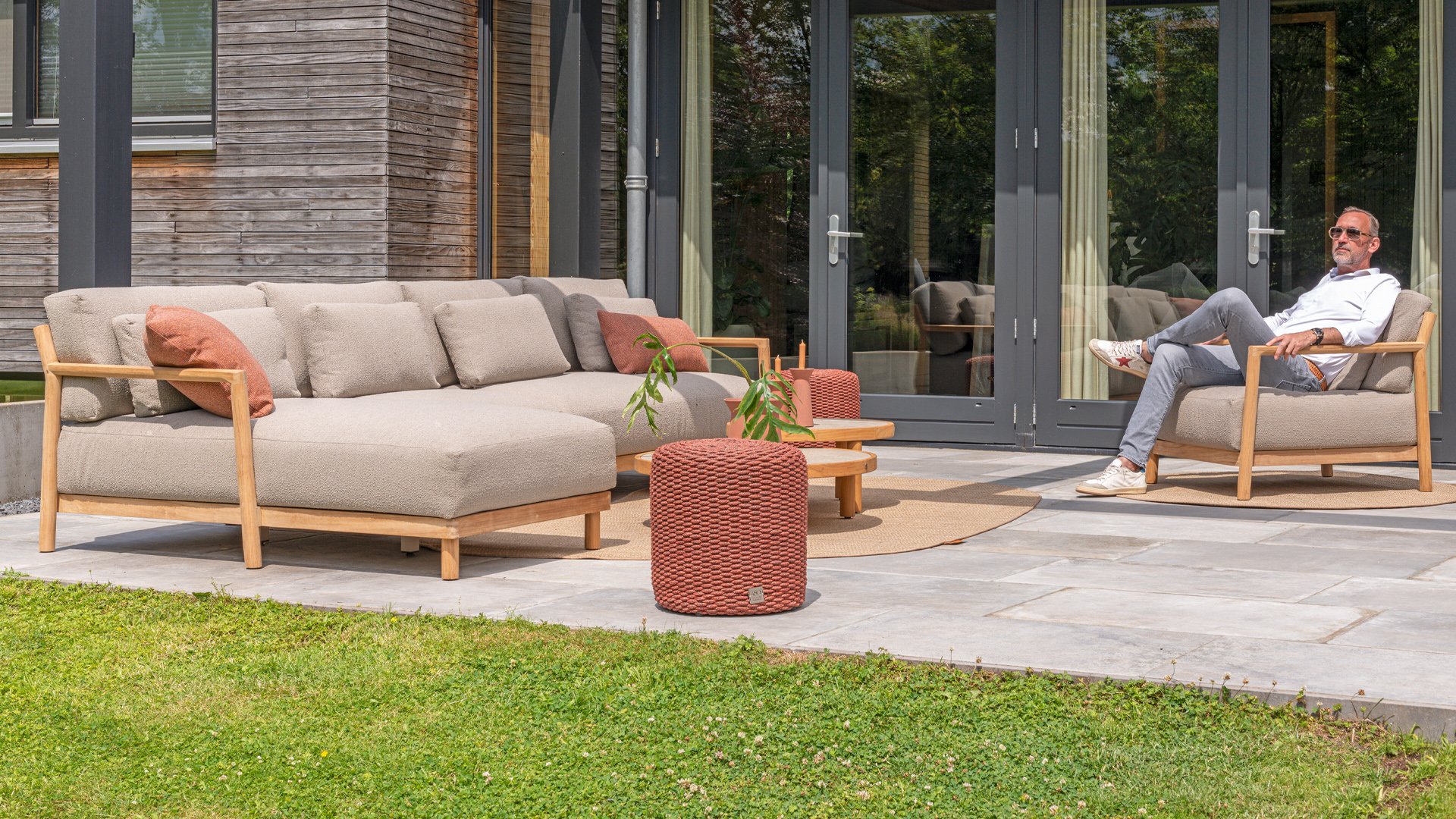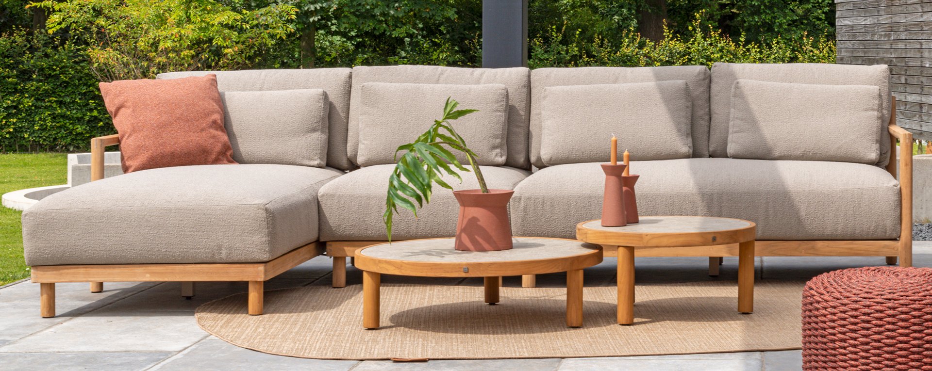 Admire Marie. Marie exudes peace, luxury, and class. The round design and the warm teak make the modular corner sofa easy to combine with various other materials but, of course, also with beautiful Marie lounge chairs. With its amazing seating comfort, you are guaranteed many summer days in your garden.