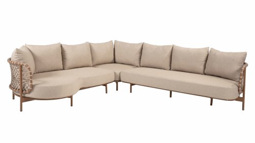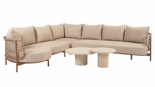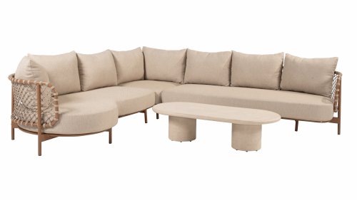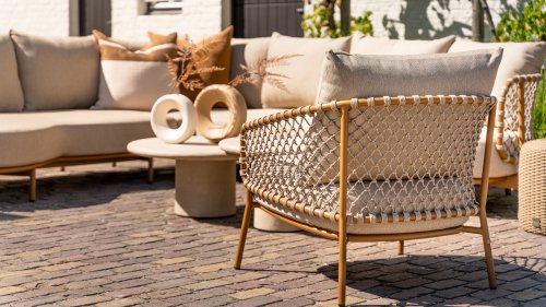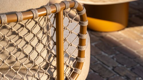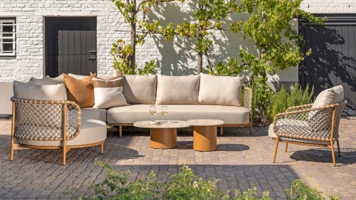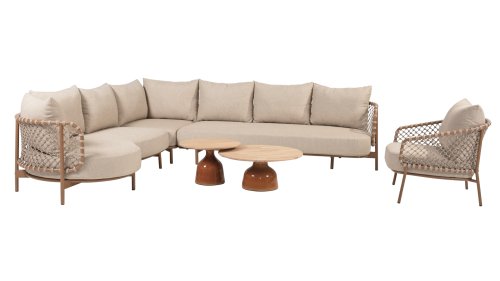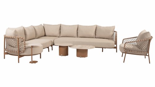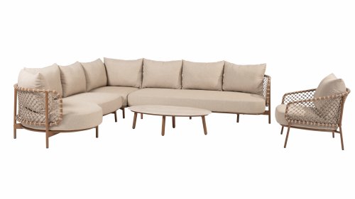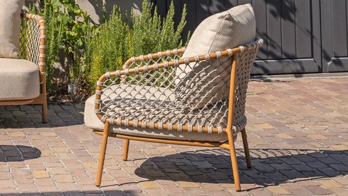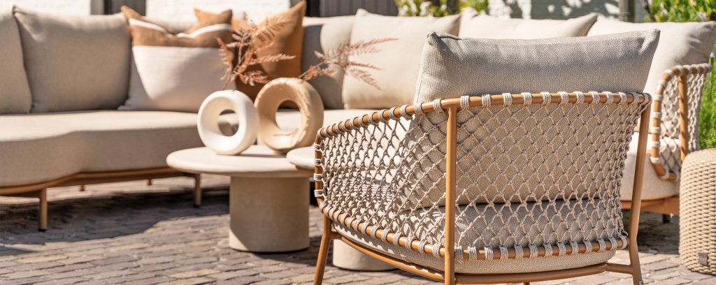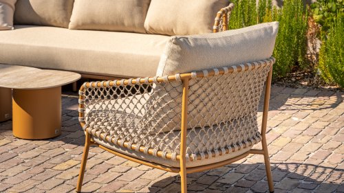 Experience timeless luxury with the Martinique lounge set from 4 Seasons Outdoor. The striking knotted rope design gives a playful yet refined character, while the amber-colored frame adds warmth and ambiance to your garden or terrace. This set is perfect for those seeking a combination of style and comfort.