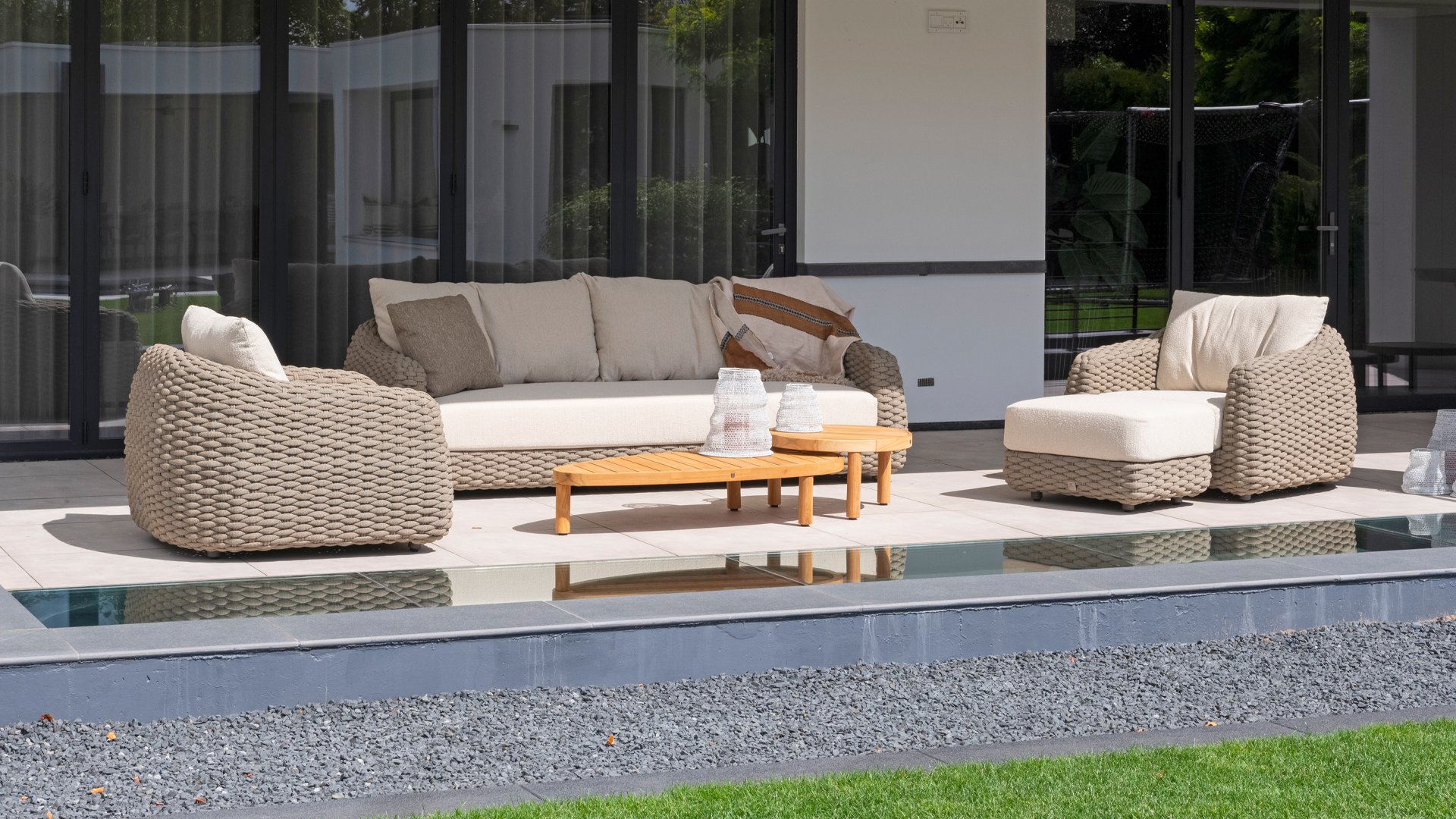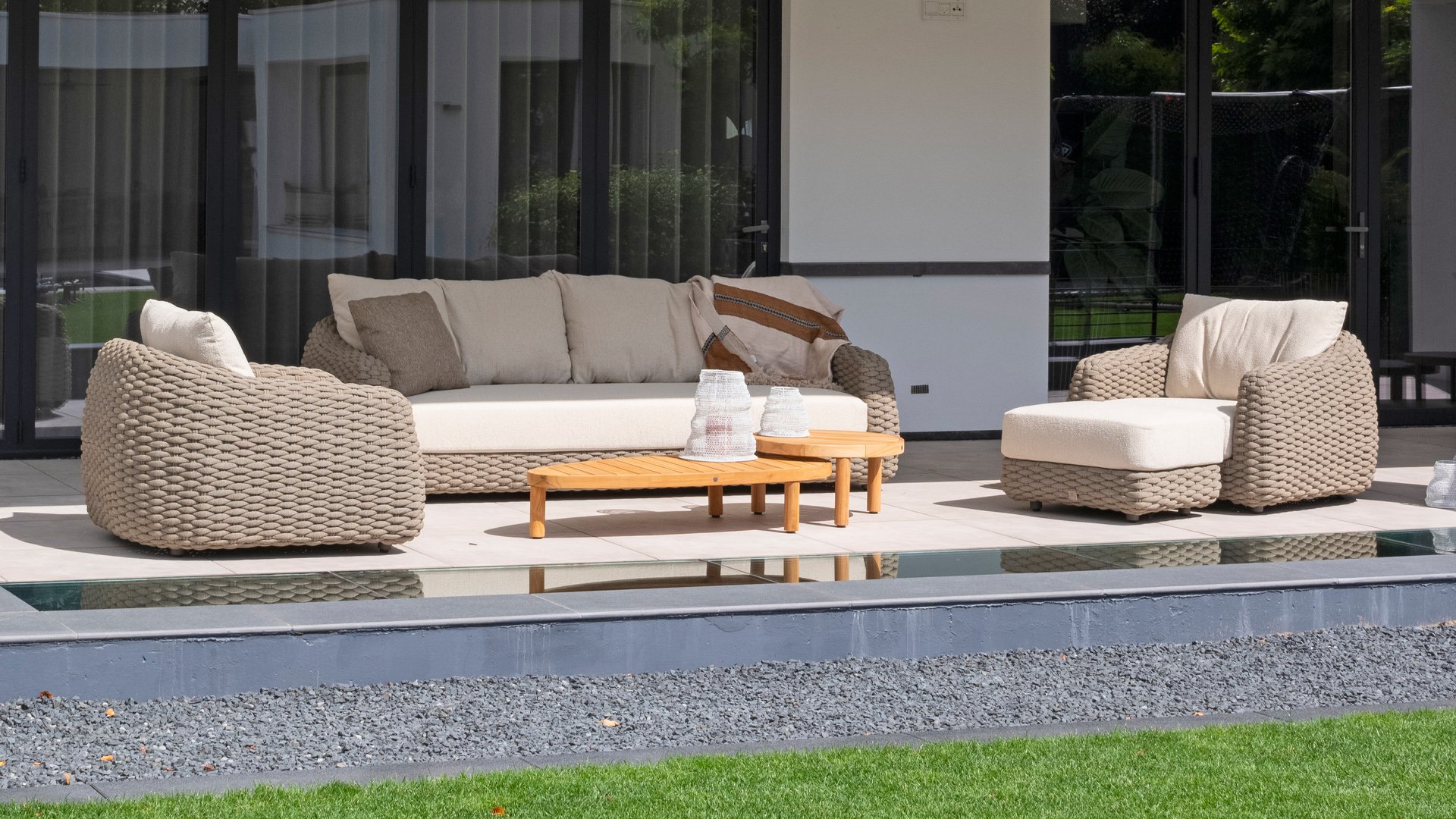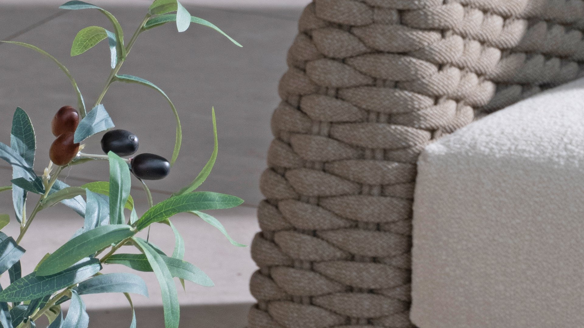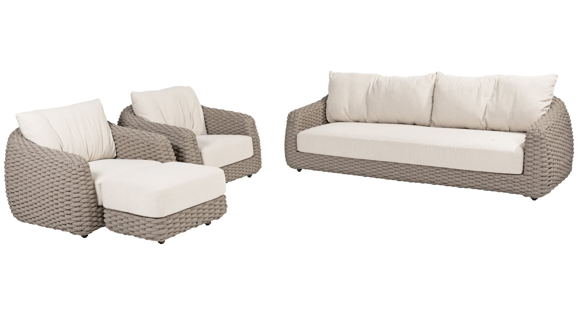 This beautiful material is perfect for outdoor use, because Taste Rope isn't just any shoelace. Taste uses very high-quality rope made from 100% SDP (Solution Dyed Polypropylene). This material is extremely strong and has very little stretch. Polypropylene is oil-based, making it virtually impermeable to dirt and contaminants, just like our cushions. Taste offers exclusive designs using hand-woven rope patterns and techniques.