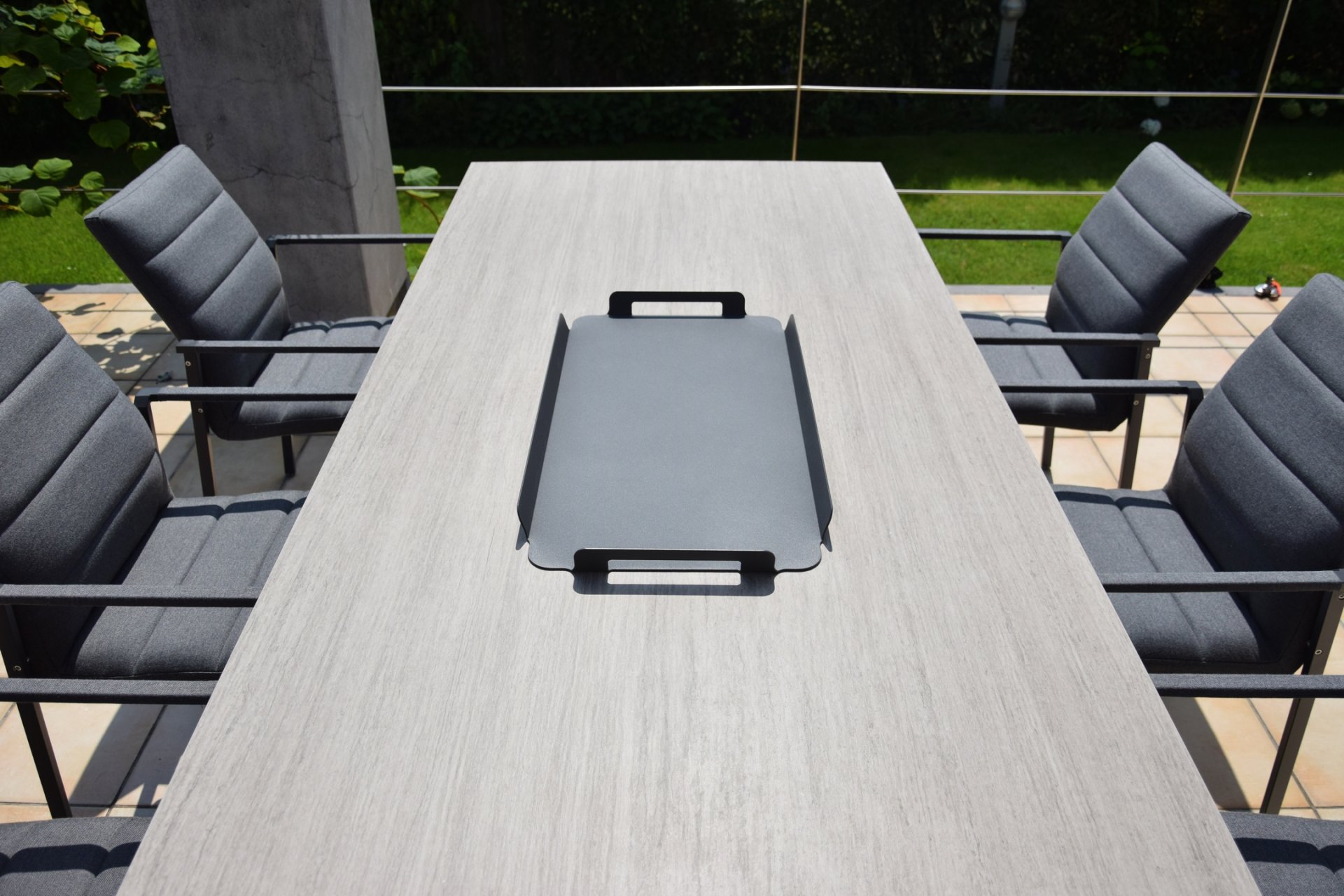Serve your guests in style, take a Maya tray out of the cupboard! This beautiful anthracite tray is made of aluminum, so leaving it outside is fine. But we think you're actually just going to take it back inside and enjoy Maya all year round.