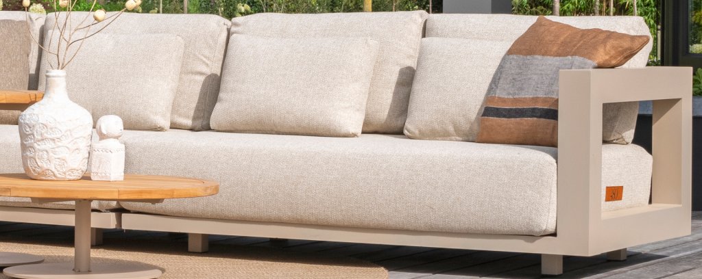 The 4SO Metropolitan aluminum lounge set from quality brand 4 Seasons Outdoor is not just any lounge. This stylish 4SO Lounge corner sofa is made of high-quality materials and looks impressive. The extra thick olefin cushions provide the best comfort and give you the ultimate feeling of leisure. The frame of the 4 Seasons Metropolitan sofa set opens on the side to give the terrace a spacious feel. Now available in the trendy Latte color!