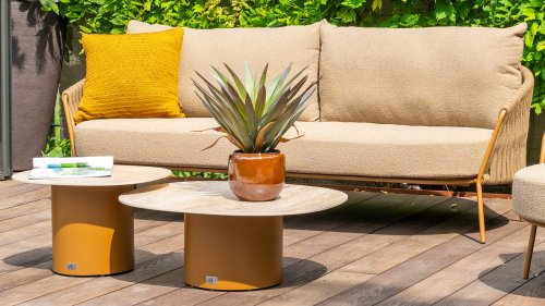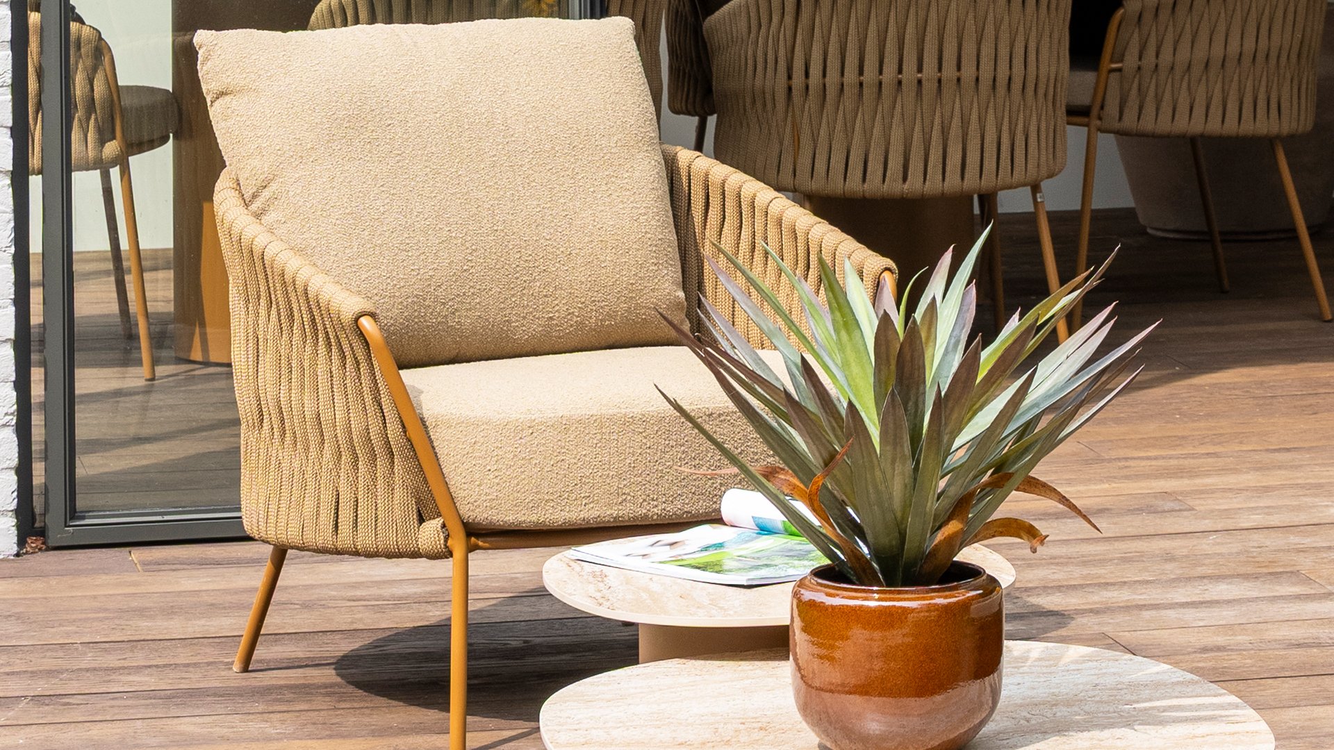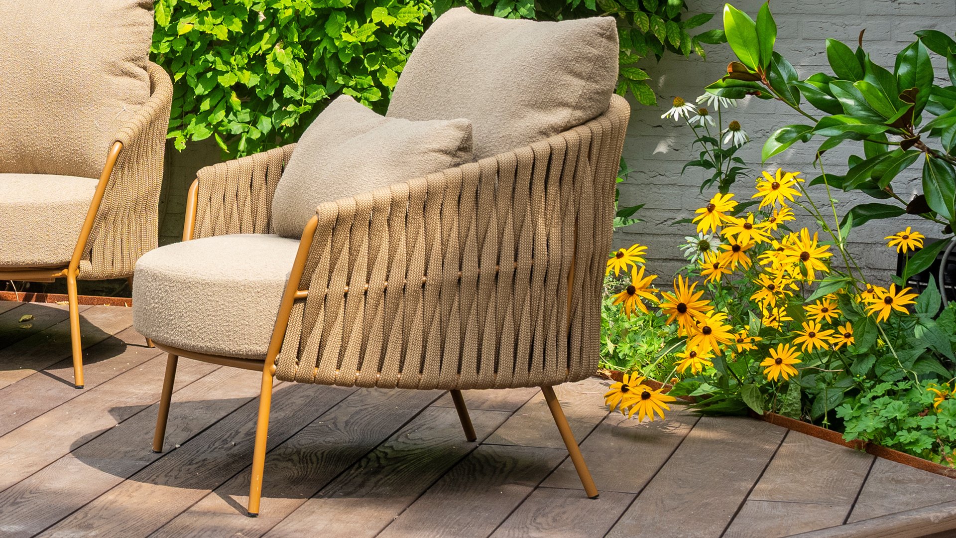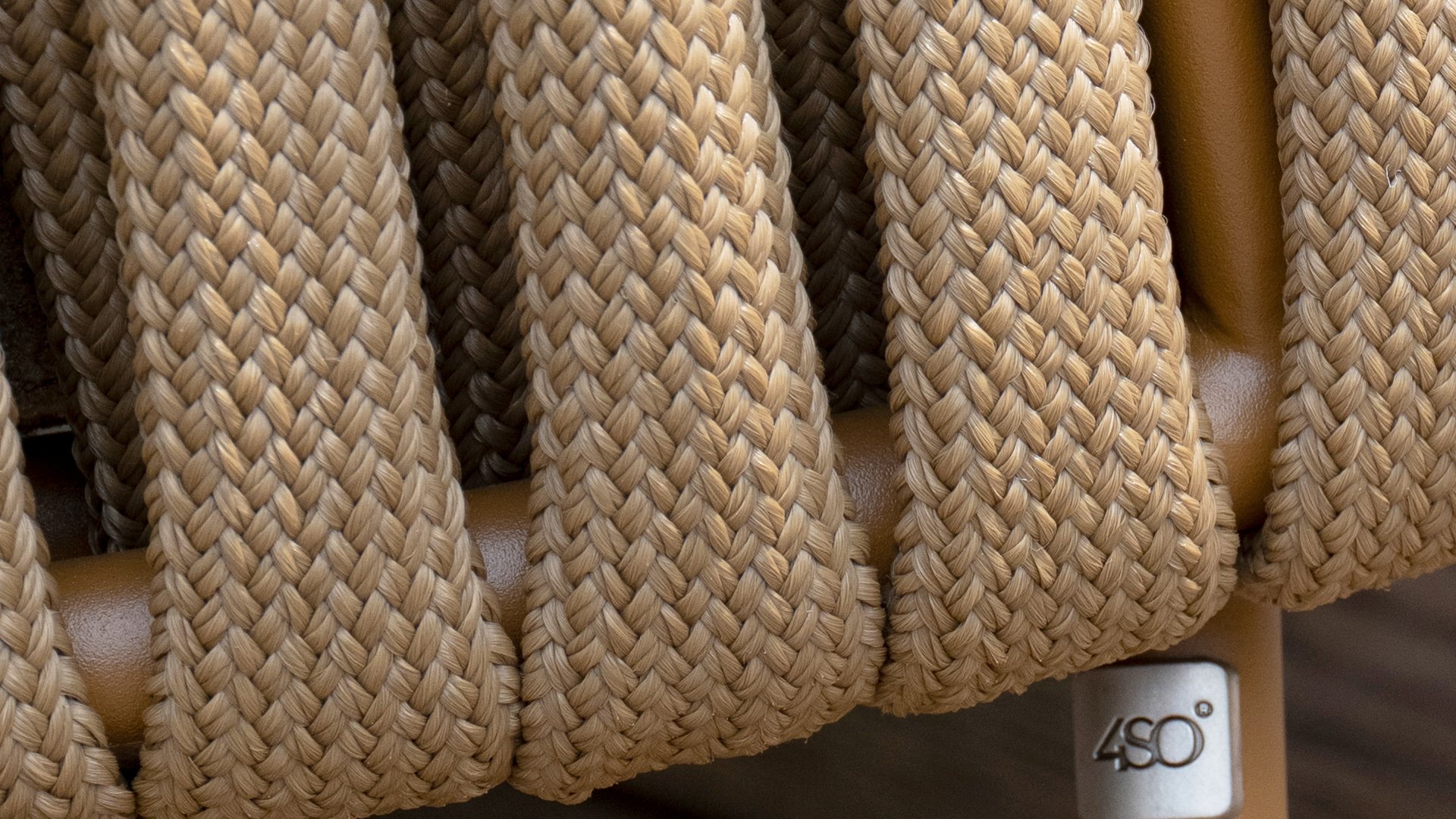 - Available in stylish color schemes: the combination of the warm amber-colored frame and elegant brown-tinted, artisan-woven rope provides a contemporary yet warm look that fits into any garden.