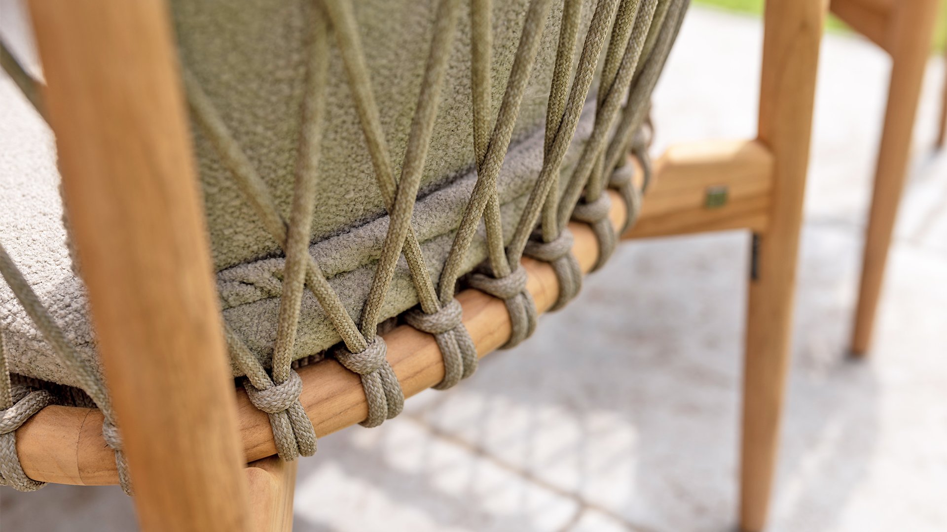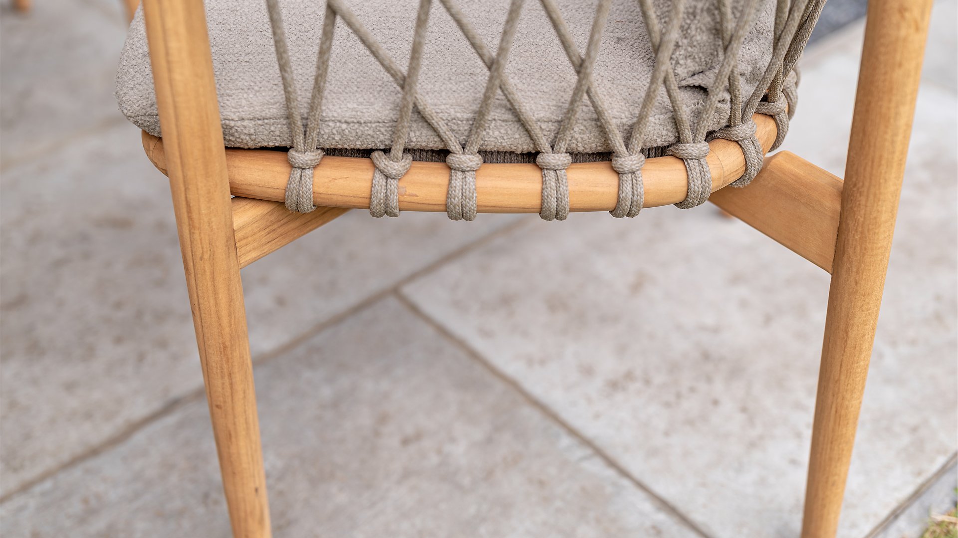 - Modern Aesthetics: The design of the Nora chair with rope detailing and Bouclé upholstery gives a contemporary look that fits perfectly in any garden or on a terrace.