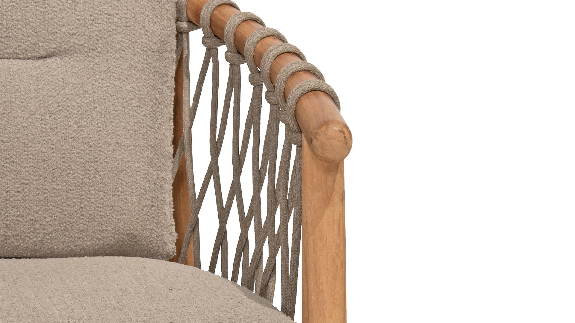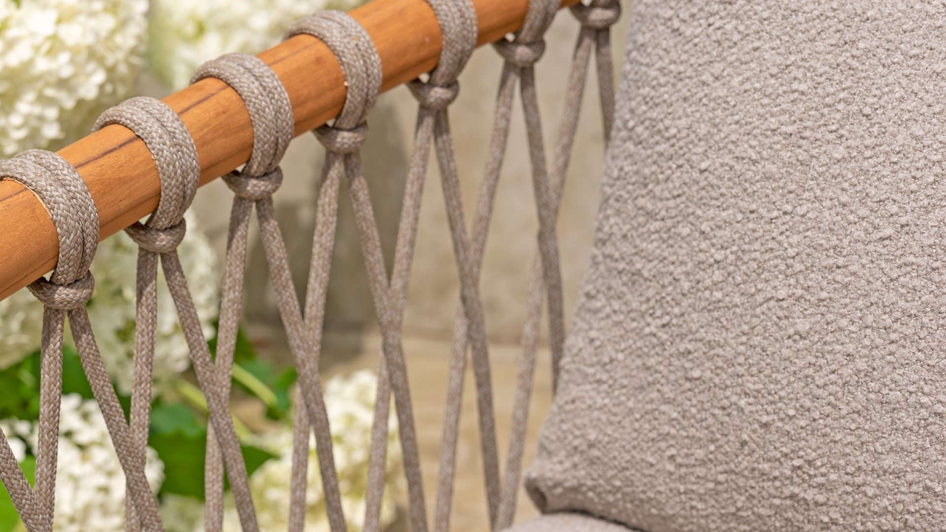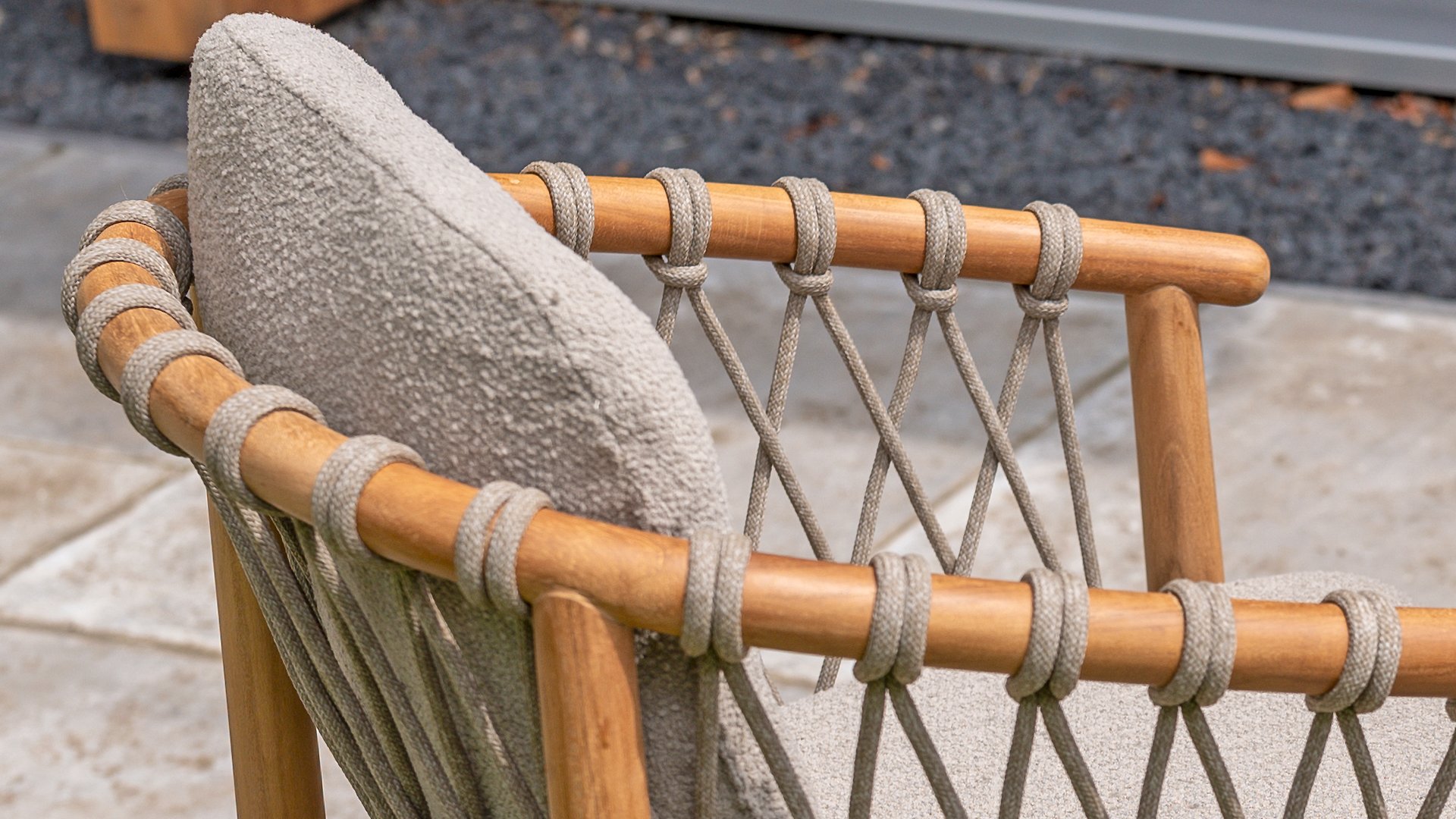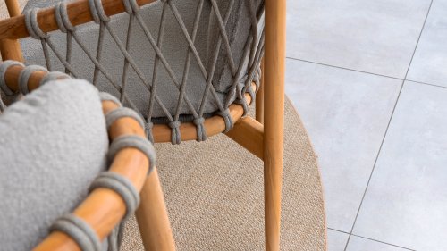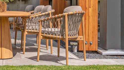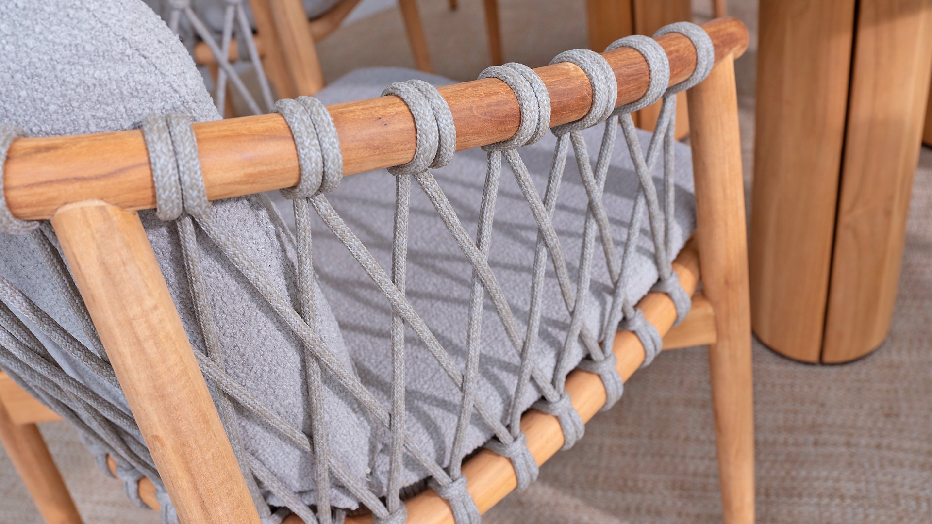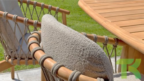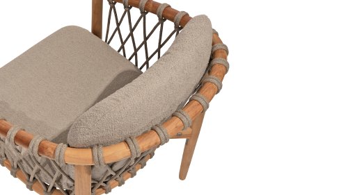 - Modern Aesthetic: The design of the Nora chair with rope design and Bouclé upholstery gives a contemporary look that fits perfectly in any garden or on a terrace.