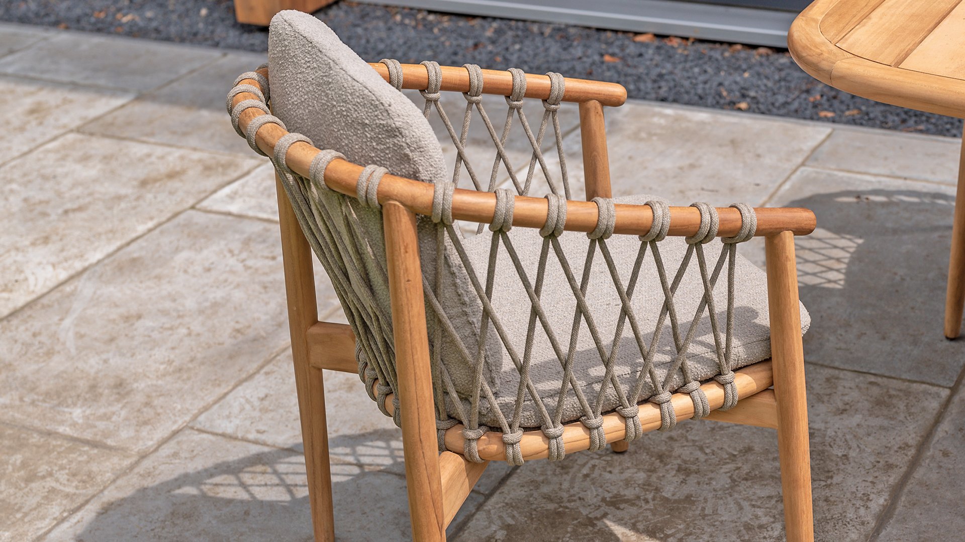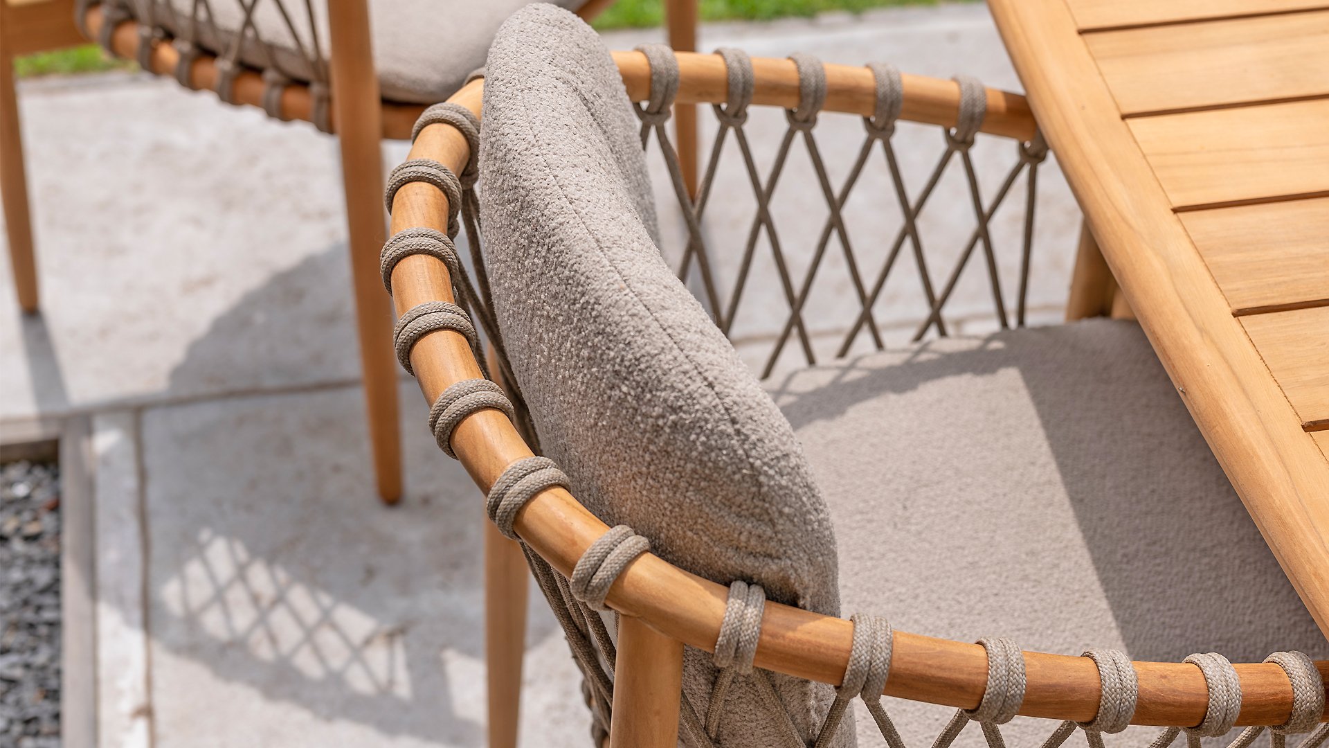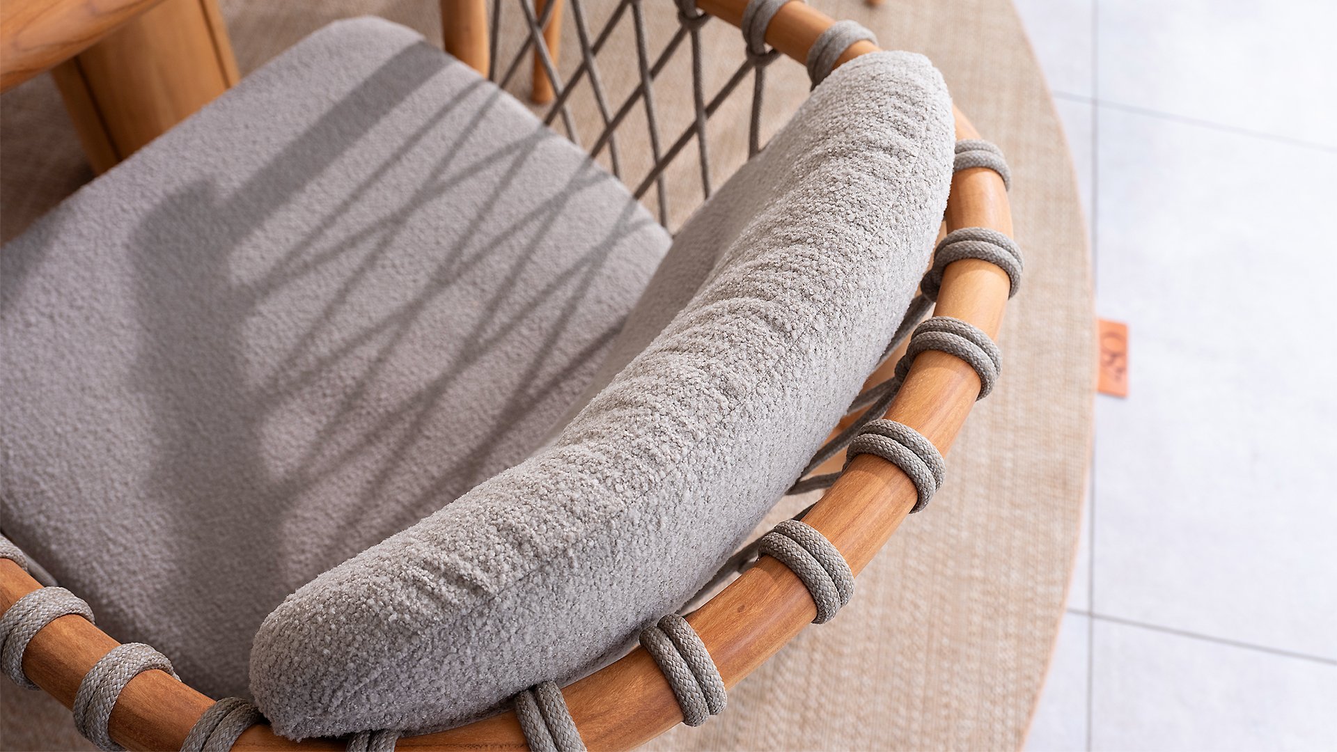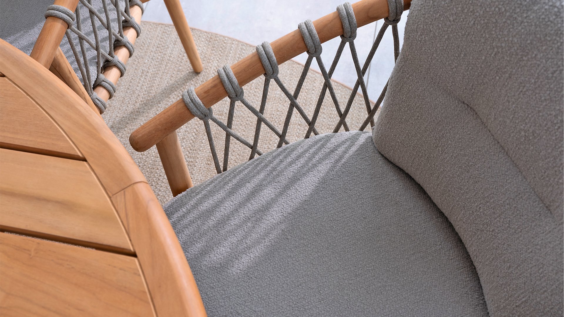 - Modern Aesthetic: The design of the Nora chair with rope design and Bouclé upholstery gives a contemporary look that fits perfectly in any garden or on a terrace.