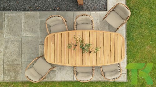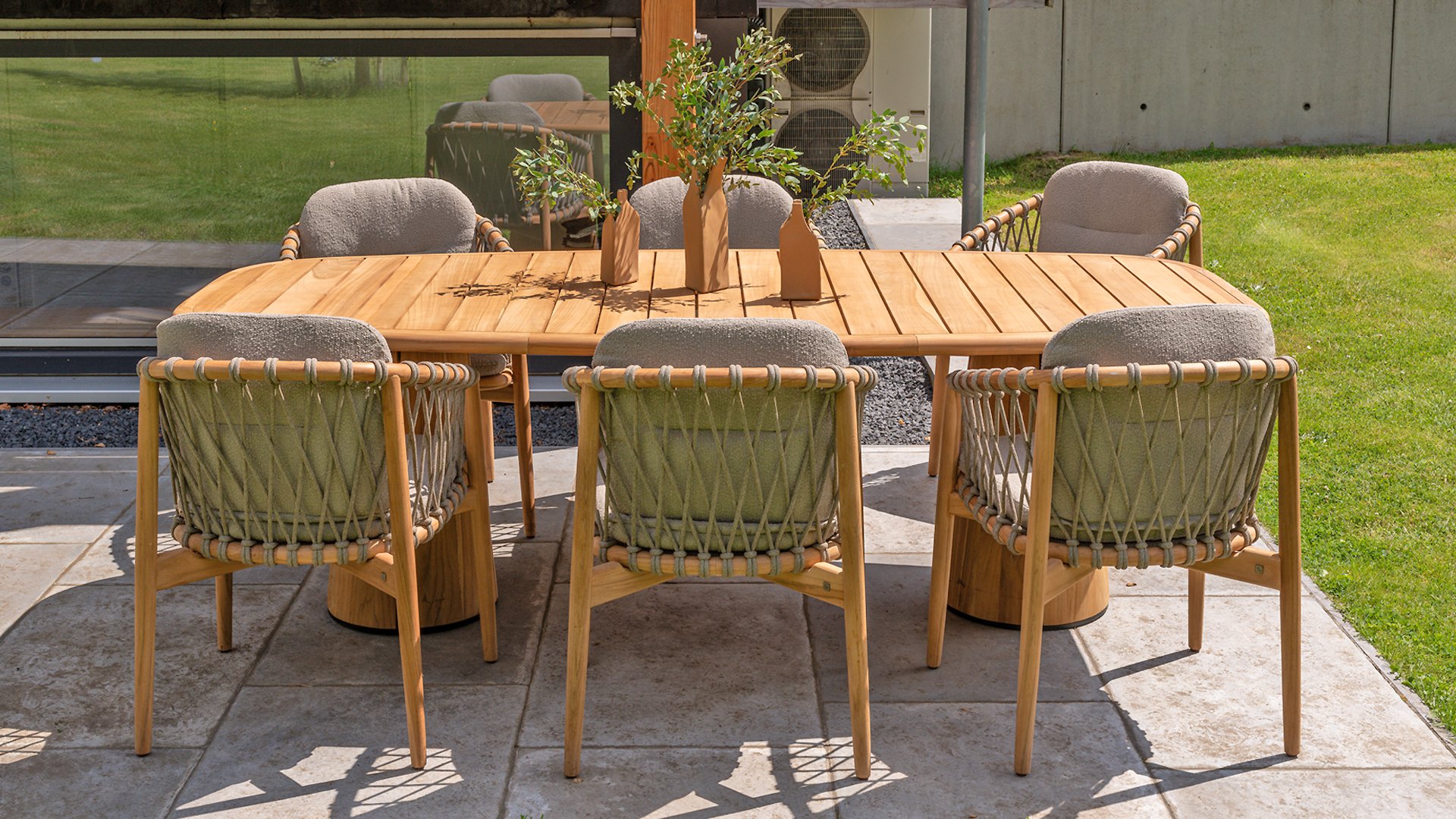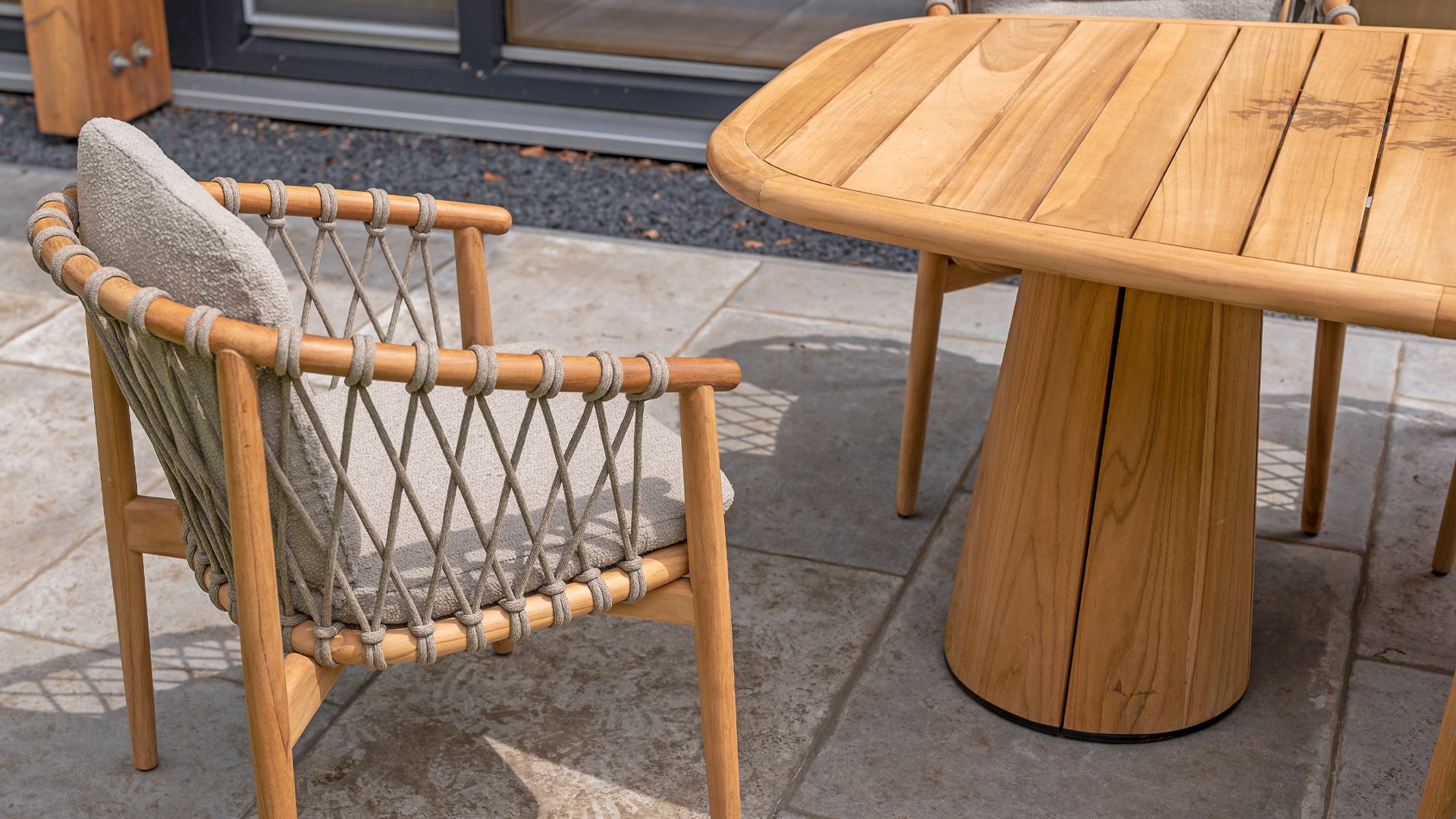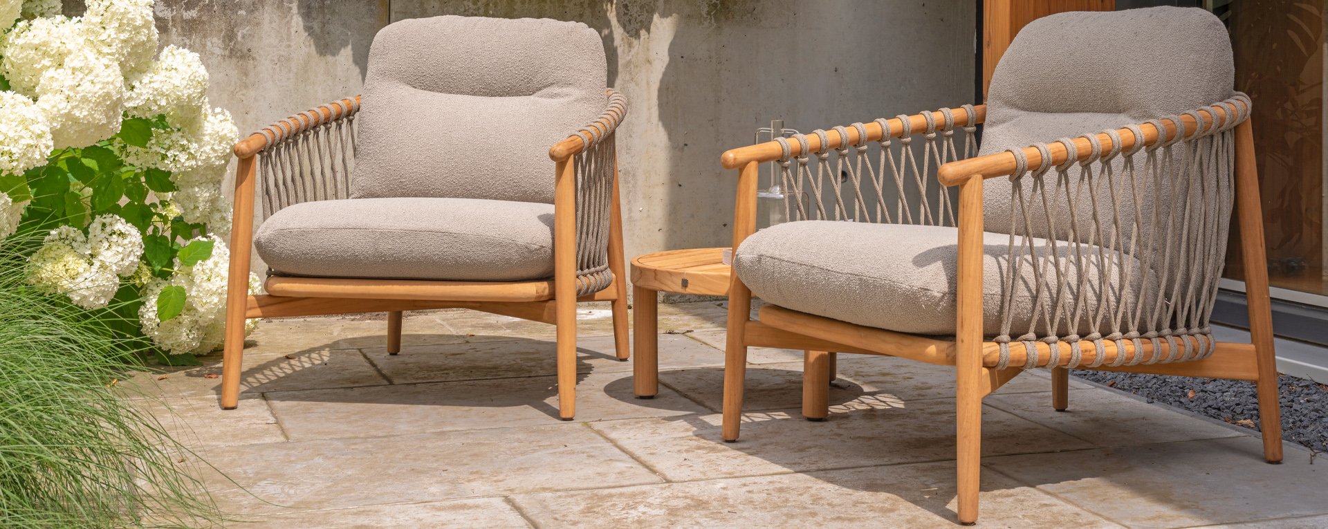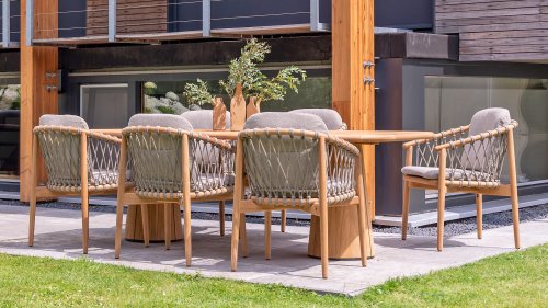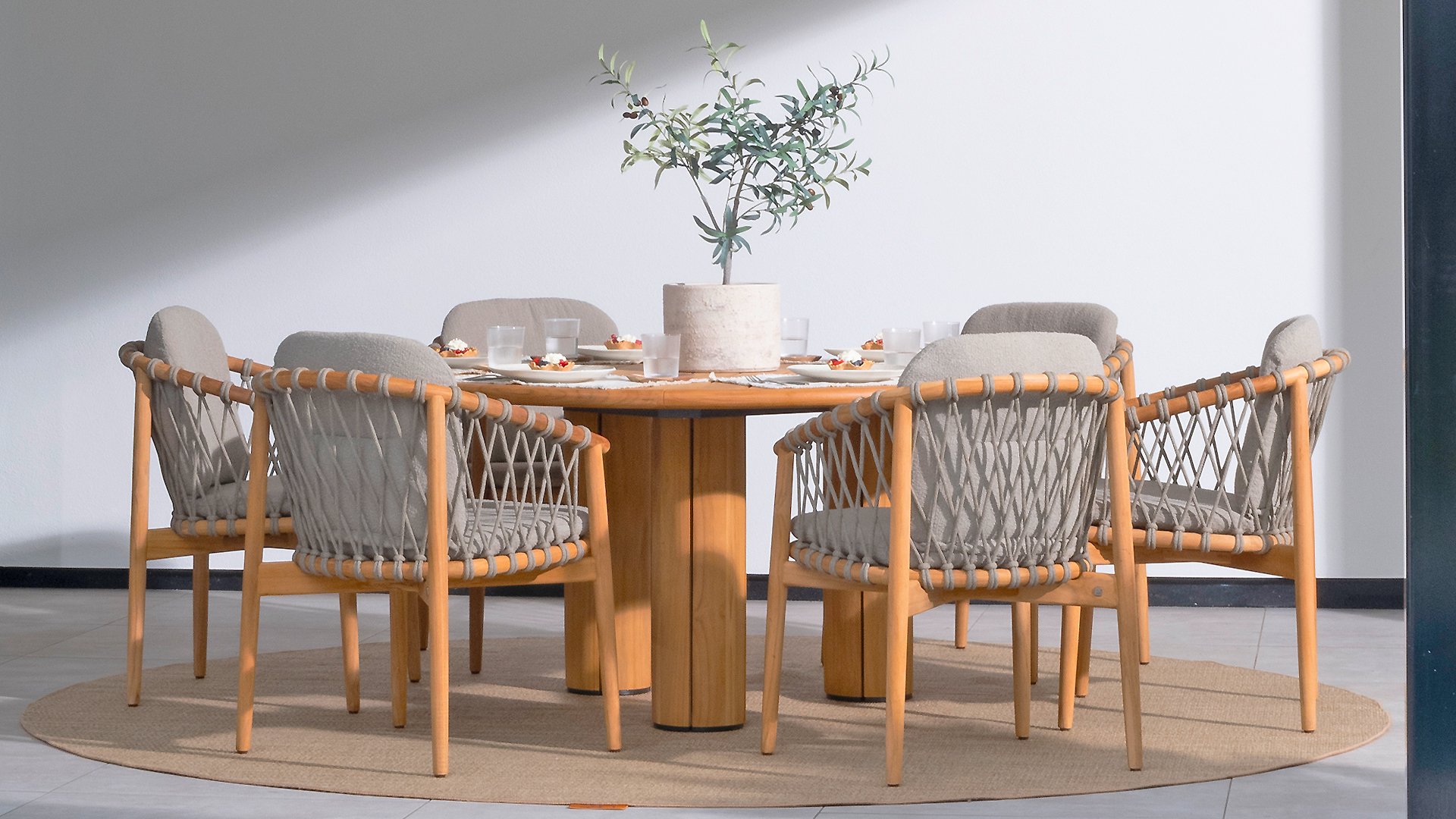 - Modern Aesthetic: The design of the Nora chair with rope design and Bouclé upholstery gives a contemporary look that fits perfectly in any garden or on a terrace.