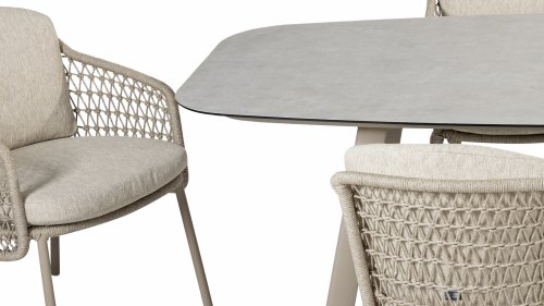 Composing a true masterpiece. Creativity is required to bring something completely new. And that's exactly what 4 Seasons Outdoor has done: the latte color of 4SO Puccini takes center stage in both the frame, cushions, and in the surprising rope pattern. The Puccini is a complete series consisting of dining and living in the same style: 4 Seasons Outdoor Puccini Dining & 4 Seasons Outdoor Puccini Lounge Set. This allows you to stay stylish by combining them. The frame of the Puccini series is powder-coated in the new color Latte. Latte is a soft and natural color, ideal if you want something other than gray for a change.