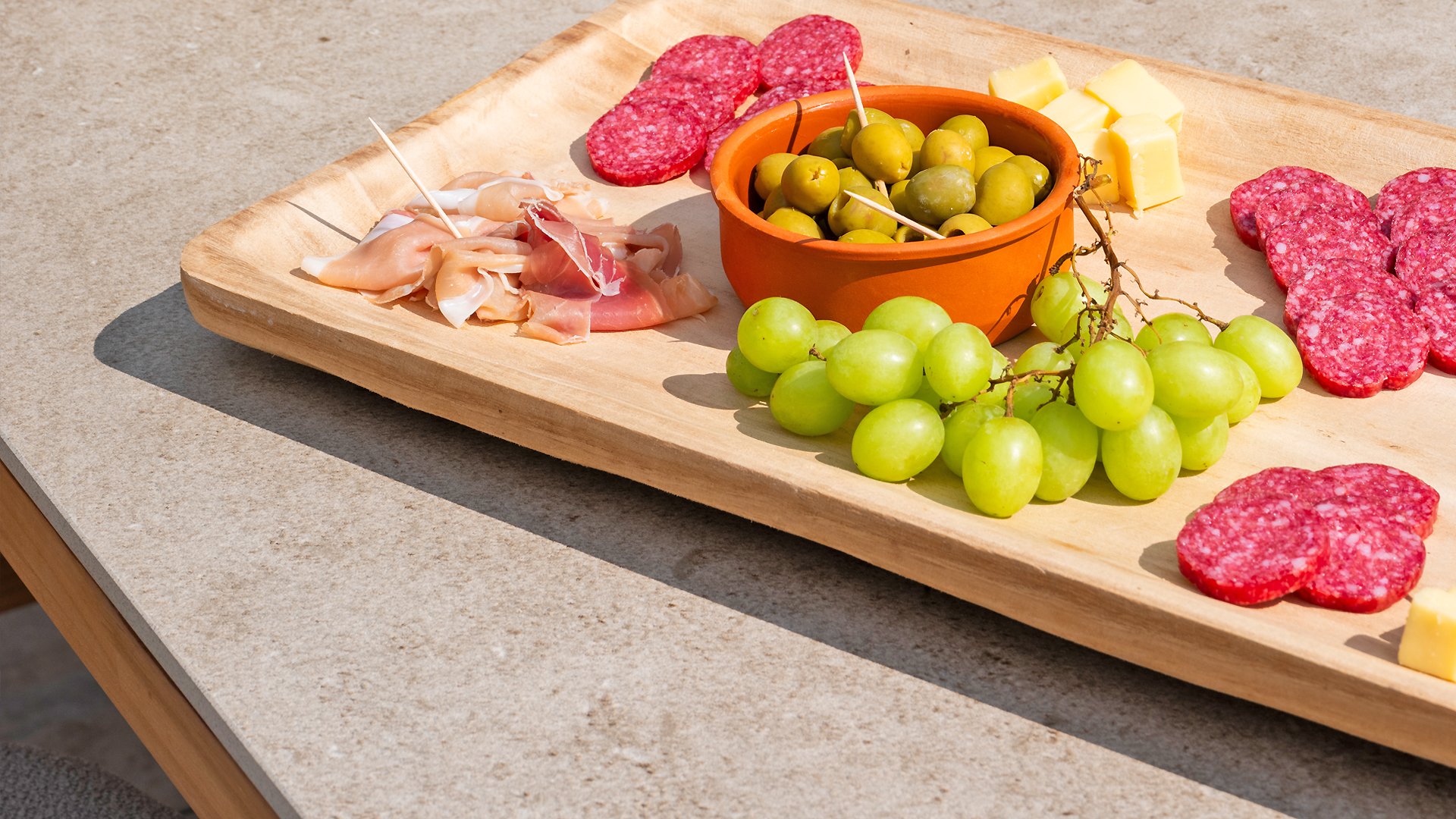 Mortex is made from a mixture of lime, cement, and fine mineral powders. Pigments and resins are added to this mixture to make it flexible, waterproof, and adhere well. It is applied by hand in thin layers and then sanded and finished with a protective sealer or wax. This creates a seamless, strong, and stylish surface suitable for furniture, floors, and walls, among other things. A Mortex garden table is weatherproof. Rain, sunlight, and temperature fluctuations have little effect on the material, provided the table is properly finished with a protective layer. It is important to be careful with acidic substances such as lemon juice, vinegar, or wine. If these remain on the surface for too long, they can damage the protective layer and cause stains.