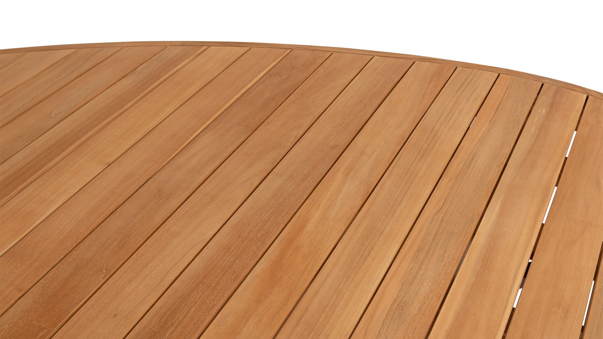 Teak is a natural product and particularly suitable for outdoor use. It is resistant to pests and mold and can withstand sun, rain, and snow. Over time, teak develops a silver-gray patina. Teak is a robust material and requires little maintenance. If you prefer the original color of your teak, you can easily prevent it from turning gray by regularly using our care product. You can also clean teak with green soap. We offer a warranty on all manufacturing and construction defects. This does not cover the working of teak. If you choose teak, we expect you to appreciate these qualities. Hairline cracks that may develop, knots in the teak, and rough surfaces or irregular discoloration over time are not covered by our warranty. These characteristics, which give teak its unique character and appearance, are part of its natural properties. Be careful with a flowerpot or vase on your teak garden table, as this can cause persistent rings or color variations. Imperfections are common; these imperfections are characteristic of this product. These irregularities can never give rise to a claim, warranty, or complaint. This is a mark of originality!