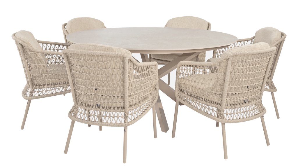 Composing a true masterpiece. Creativity is required to bring something completely new. And that's exactly what 4 Seasons Outdoor has done: the latte color of 4SO Puccini takes center stage in both the frame, cushions, and in the surprising rope pattern. The Puccini is a complete series consisting of dining and living in the same style: 4 Seasons Outdoor Puccini Dining & 4 Seasons Outdoor Puccini Lounge Set. This allows you to stay stylish by combining them. The frame of the Puccini series is powder-coated in the new color Latte. Latte is a soft and natural color, ideal if you want something other than gray for a change.
