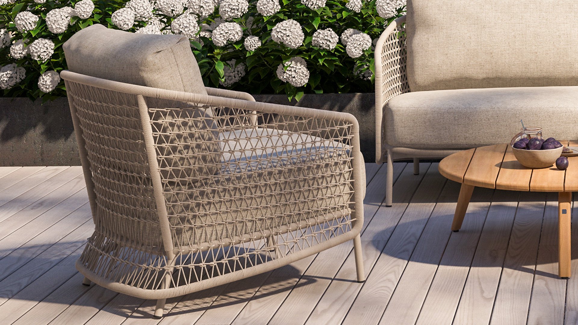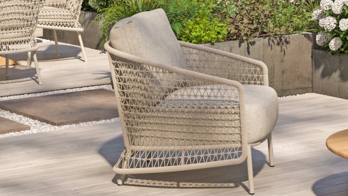 Composing a true masterpiece. Creativity is needed to bring something completely new. And that is exactly what 4 Seasons Outdoor has done: the latte color of 4SO Puccini plays the solo in both frame, cushions, and in the surprising rope pattern.
