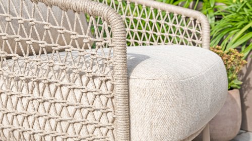 A rope may seem slightly weaker than, for example, wicker. Yet, the raw materials for these materials are almost identical. Stretch is minimal; 4 Seasons Outdoor garden furniture with Rope is suitable for people weighing up to 110 kg. It is therefore an exceptionally strong material, but it is important to be careful with sharp objects. Our 4SO Rope is weather-resistant, but a sharp object can seriously damage your garden furniture. We offer a full 5-year warranty on manufacturing and construction defects. Should any damage unexpectedly occur, it can usually be repaired. In that case, always contact your point of sale. 4Seasons offers exclusive designs using hand-woven Rope patterns and techniques.