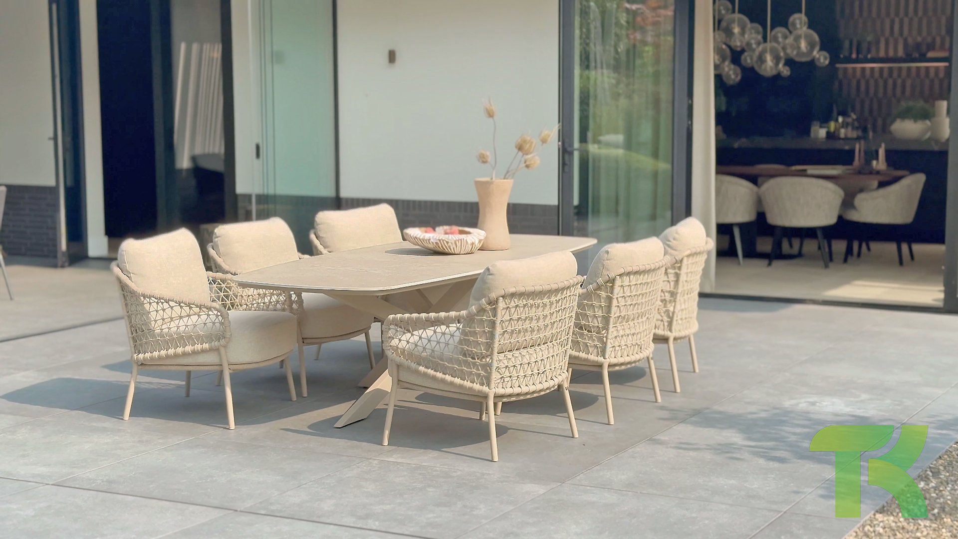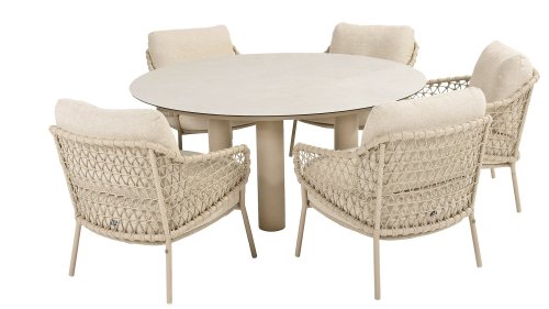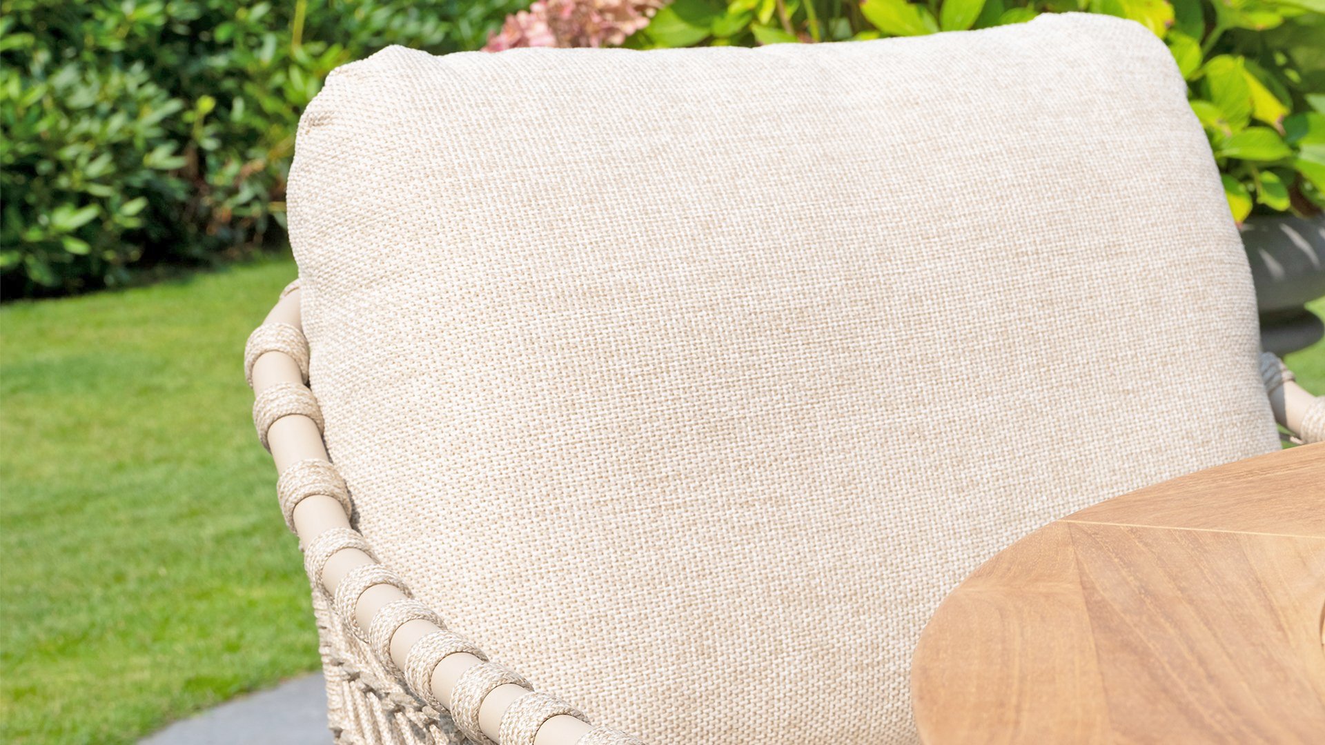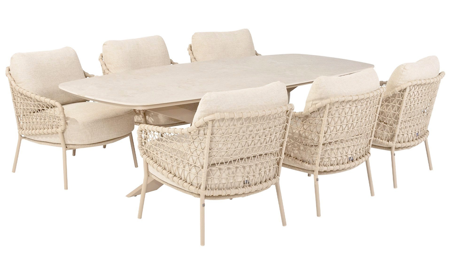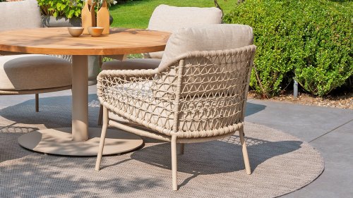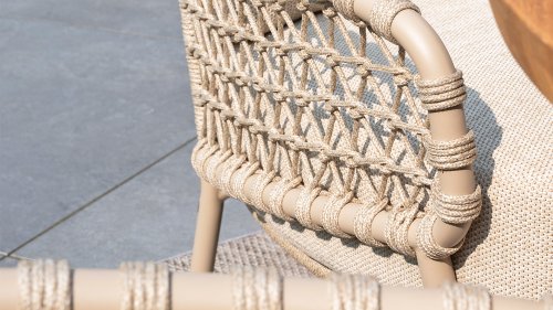 This stylish 4SO Sardinia Low Dining garden chair in the color latte/beige is perfect for any outdoor space. Made of high-quality powder-coated aluminum and rope, this chair combines durability with a modern look. With a 5-year factory warranty, you are assured of quality and long-lasting use. If you don't want to spend money on a garden set and a lounge set, the truth lies in between. Get 2 for the price of 1 with the 4 Seasons Sardinia Low Dining!