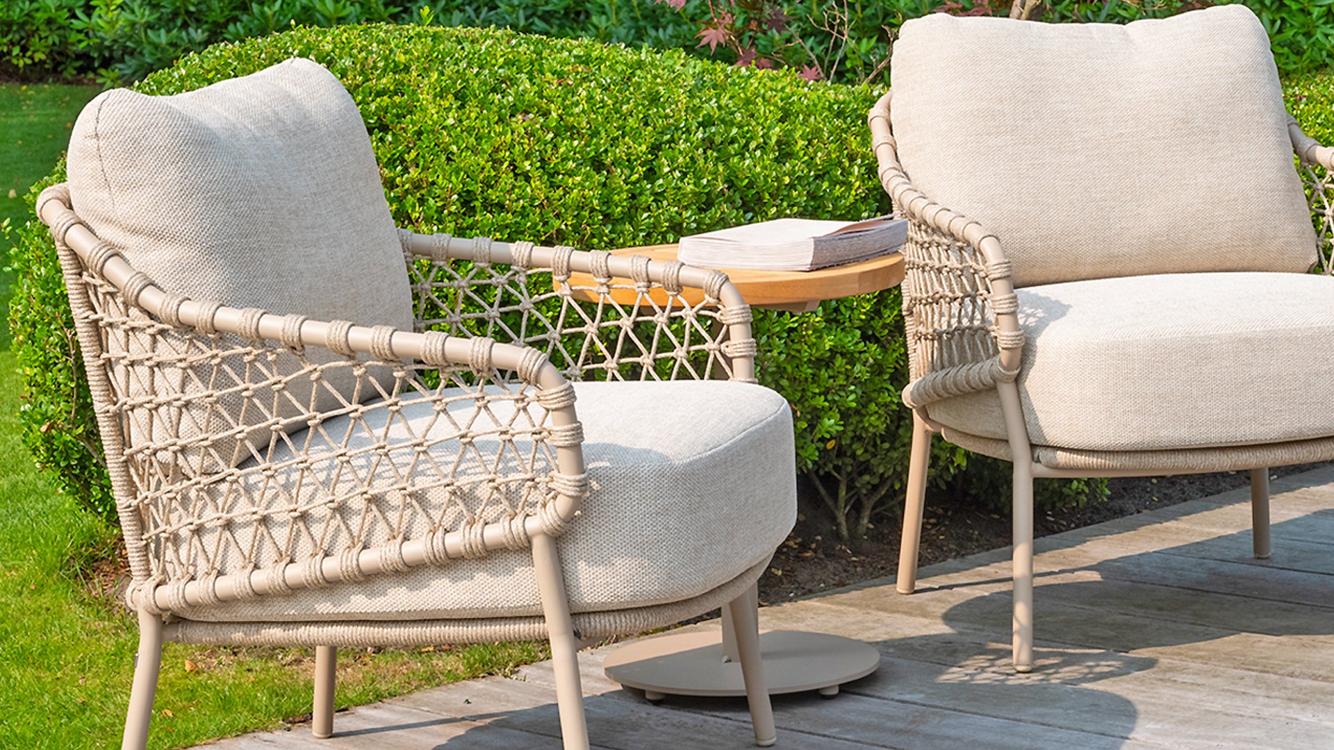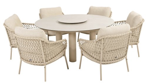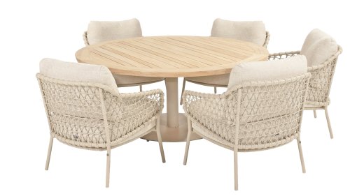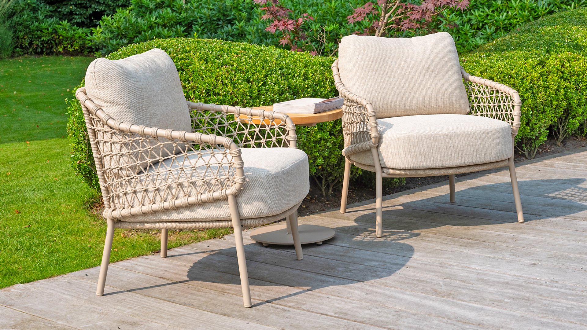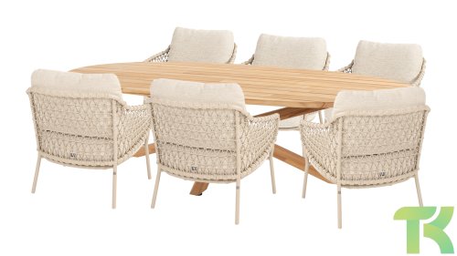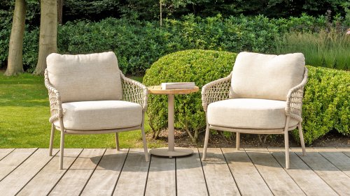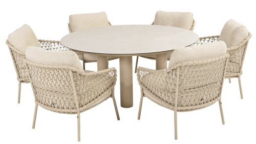 This stylish 4SO Sardinia Low Dining garden chair in the color latte/beige is perfect for any outdoor space. Made of high-quality powder-coated aluminum and rope, this chair combines durability with a modern look. With a 5-year factory warranty, you are assured of quality and long-lasting use. If you don't want to spend money on a garden set and a lounge set, the truth lies in between. Get 2 for the price of 1 with the 4 Seasons Sardinia Low Dining!