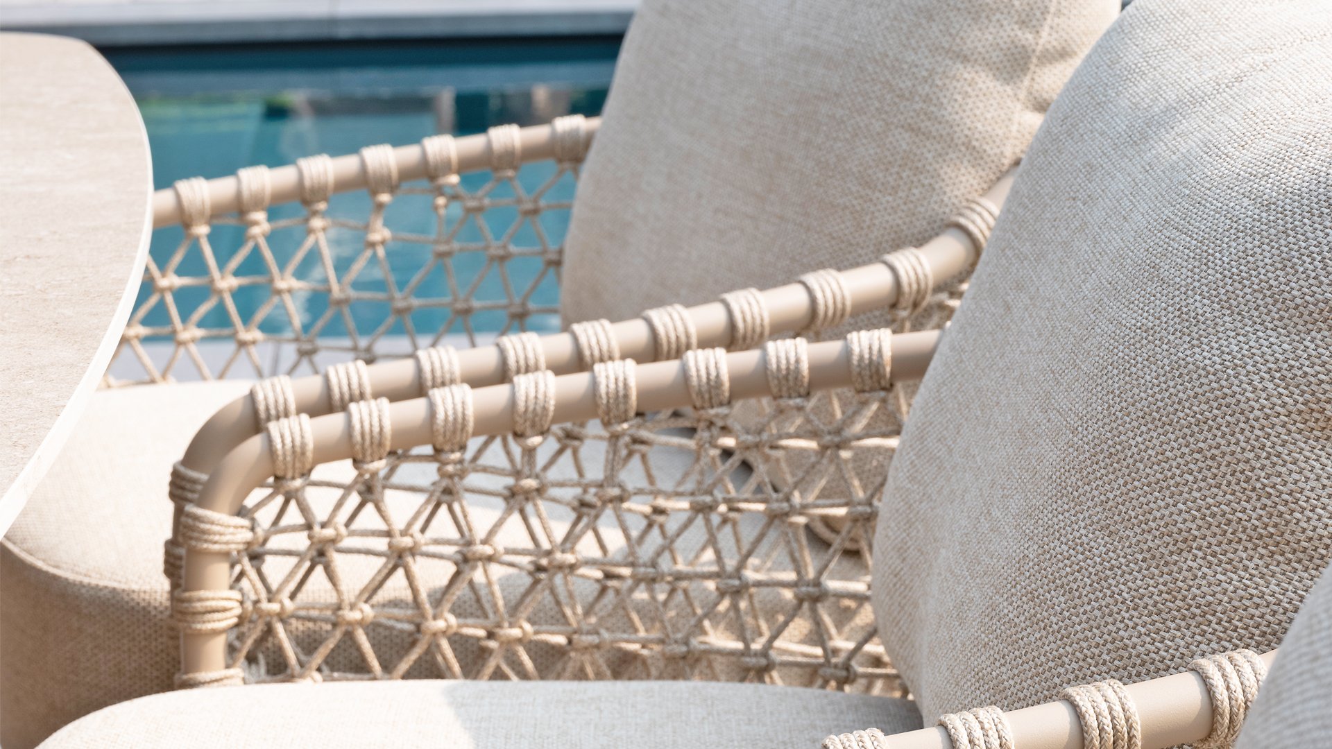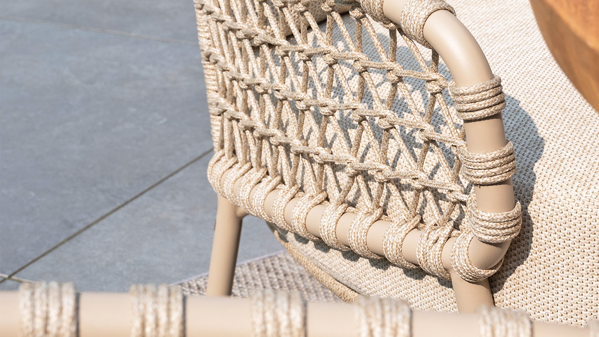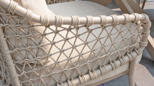 - Natural Look: The latte rope covering gives the chair a natural, warm, and friendly appearance, perfect for a relaxing outdoor environment.
