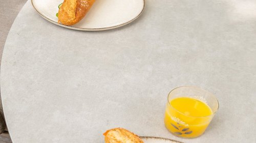 Mortex is made from a mixture based on lime, cement, and fine mineral powders. Pigments and resins are added to this mixture to make it flexible, waterproof, and adhere well. It is applied by hand in thin layers and then sanded and finished with a protective sealer or wax. This creates a seamless, strong, and stylish surface suitable for furniture, floors, and walls, among other things. A Mortex garden table is weatherproof. Rain, sunlight, and temperature fluctuations have little effect on the material, provided the table is properly finished with a protective layer. It is important to be careful with acidic substances such as lemon juice, vinegar, or wine. If these remain on the surface for too long, they can damage the protective layer and cause stains.