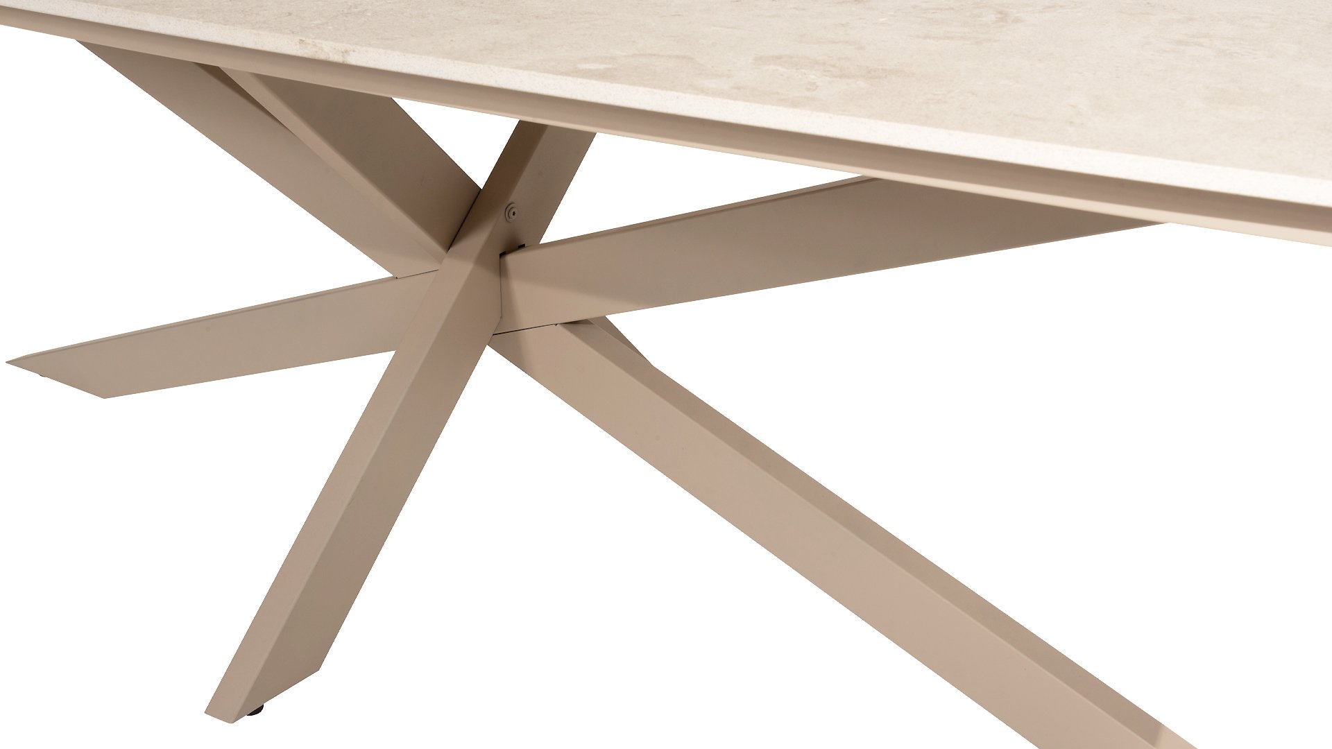 The Nevada table is a beautiful low-dining table that is perfect for outdoor living. With its false oval (barrel) ceramic top combined with a soft latte color base, it radiates warmth and coziness. The ceramic is ideal for outdoor use: it is durable, stain-resistant, and easy to clean. The base of the table is a modern cross base, which not only ensures stability but also gives a contemporary look. This design provides ample space for comfortable chairs, allowing you to relax during an informal meal or drinks with friends and family. With the low height of the Nevada low dining table, you create an informal, relaxed atmosphere that is perfect for long summer evenings in the garden or on the terrace. With its elegant shape and natural color, the Nevada table is a stunning addition to any outdoor space, ideal for enjoying life outdoors together!