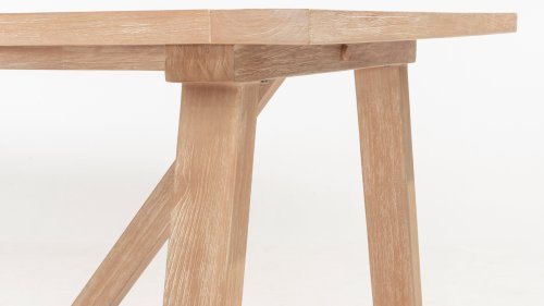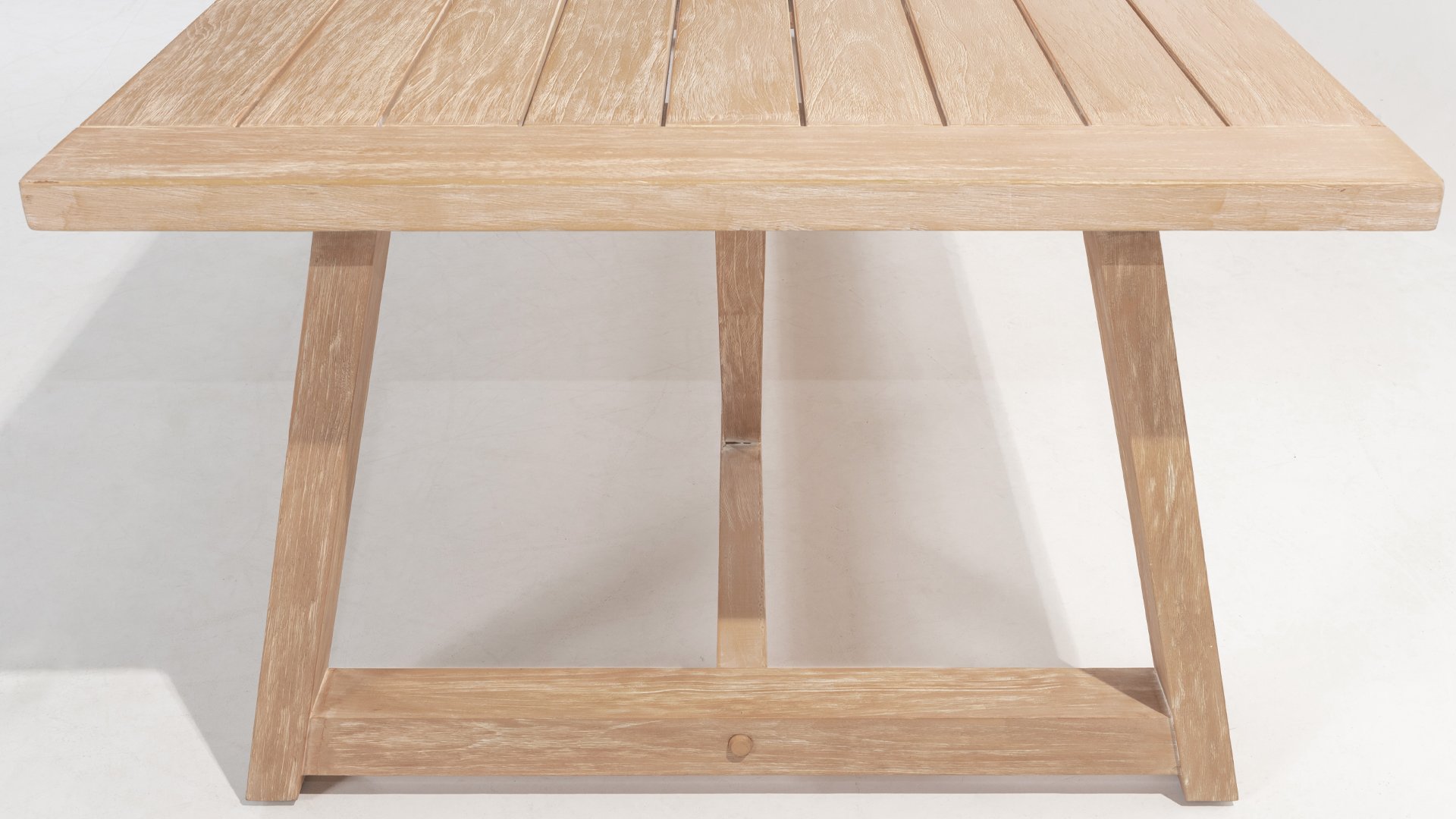 Teak is a natural product and particularly suitable for outdoor use. It is resistant to pests and mold and can withstand sun, rain, and snow. Over time, teak develops a silver-gray patina. Teak is a robust material and requires little maintenance. If you prefer the original color of your teak, you can easily prevent it from turning gray by regularly using our care product. You can also clean teak with green soap. We offer a warranty on all manufacturing and construction defects. This does not cover the working of teak. If you choose teak, we expect you to appreciate these qualities. Hairline cracks that may develop, knots in the teak, and rough surfaces or irregular discoloration over time are not covered by our warranty. These characteristics, which give teak its unique character and appearance, are part of its natural properties. Be careful with a flowerpot or vase on your teak garden table, as this can cause persistent rings or color variations. Imperfections are common; these imperfections are characteristic of this product. These irregularities can never give rise to a claim, warranty, or complaint. This is a mark of originality!