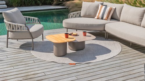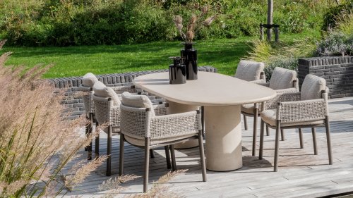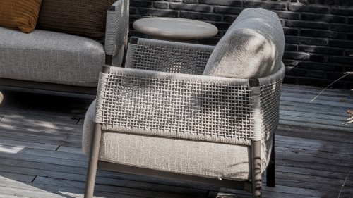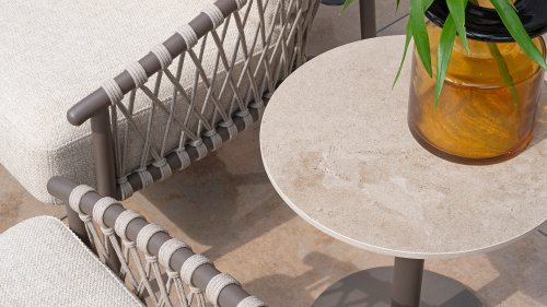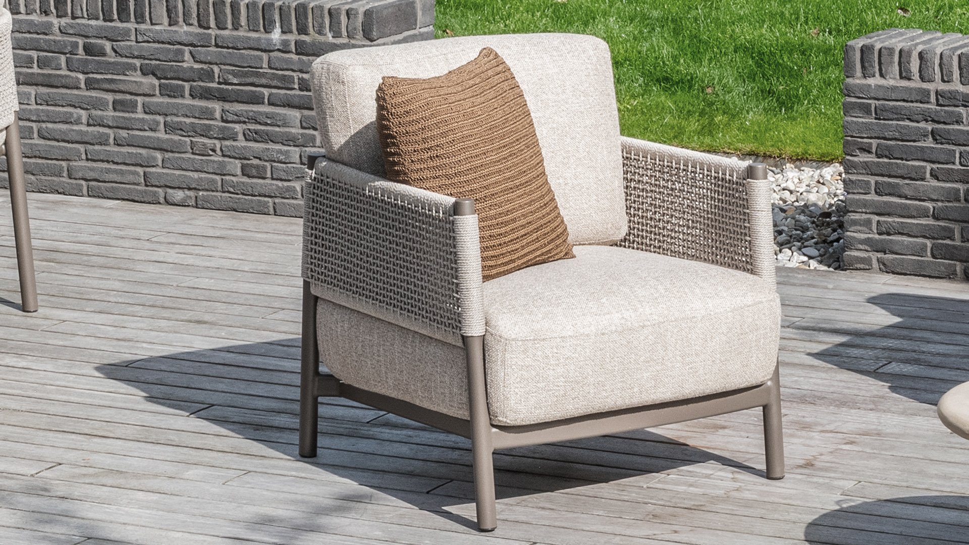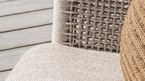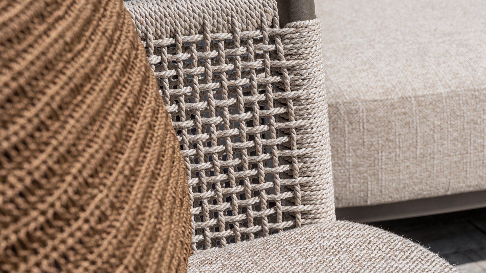 A design inspired by the savanna. The name Savanne is no coincidence. The lounge set features warm, natural tones reminiscent of the vast African savannas. The terre-colored aluminum frame reflects the earthy colors of the sandy plains at sunset, while the unique rope knot pattern references artisanal structures and natural materials. The result is a set that exudes tranquility and will be a striking focal point in any garden.