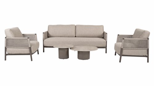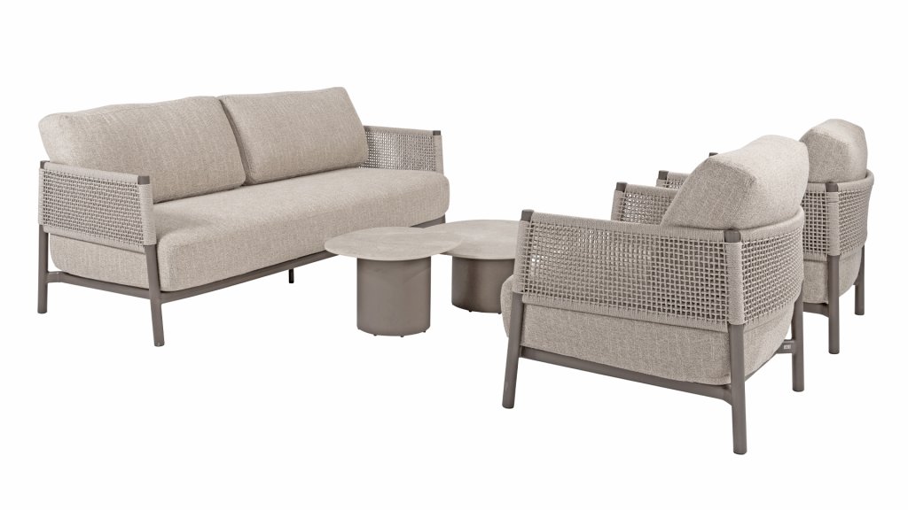 The name Savanne is no coincidence. The lounge set features warm, natural tones reminiscent of the vast African savannas. The terre-colored aluminum frame reflects the earthy colors of sandy plains at sunset, while the unique rope knot pattern references artisanal structures and natural materials. The result is a set that exudes tranquility and is a striking focal point in any garden.