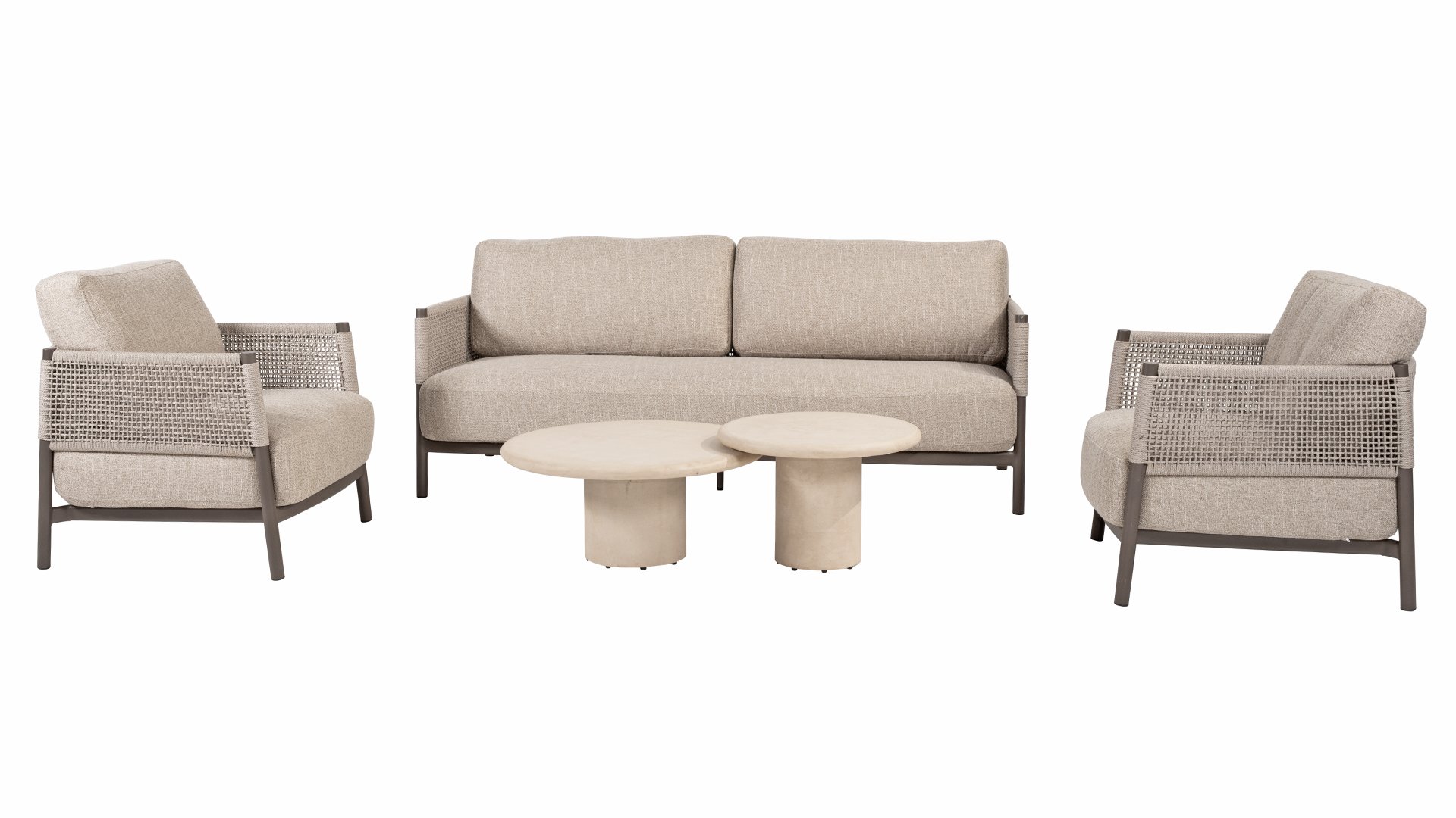 The name Savanne is no coincidence. The lounge set features warm, natural tones reminiscent of the vast African savannas. The terre-colored aluminum frame reflects the earthy colors of sandy plains at sunset, while the unique rope knot pattern references artisanal structures and natural materials. The result is a set that exudes tranquility and is a striking focal point in any garden.