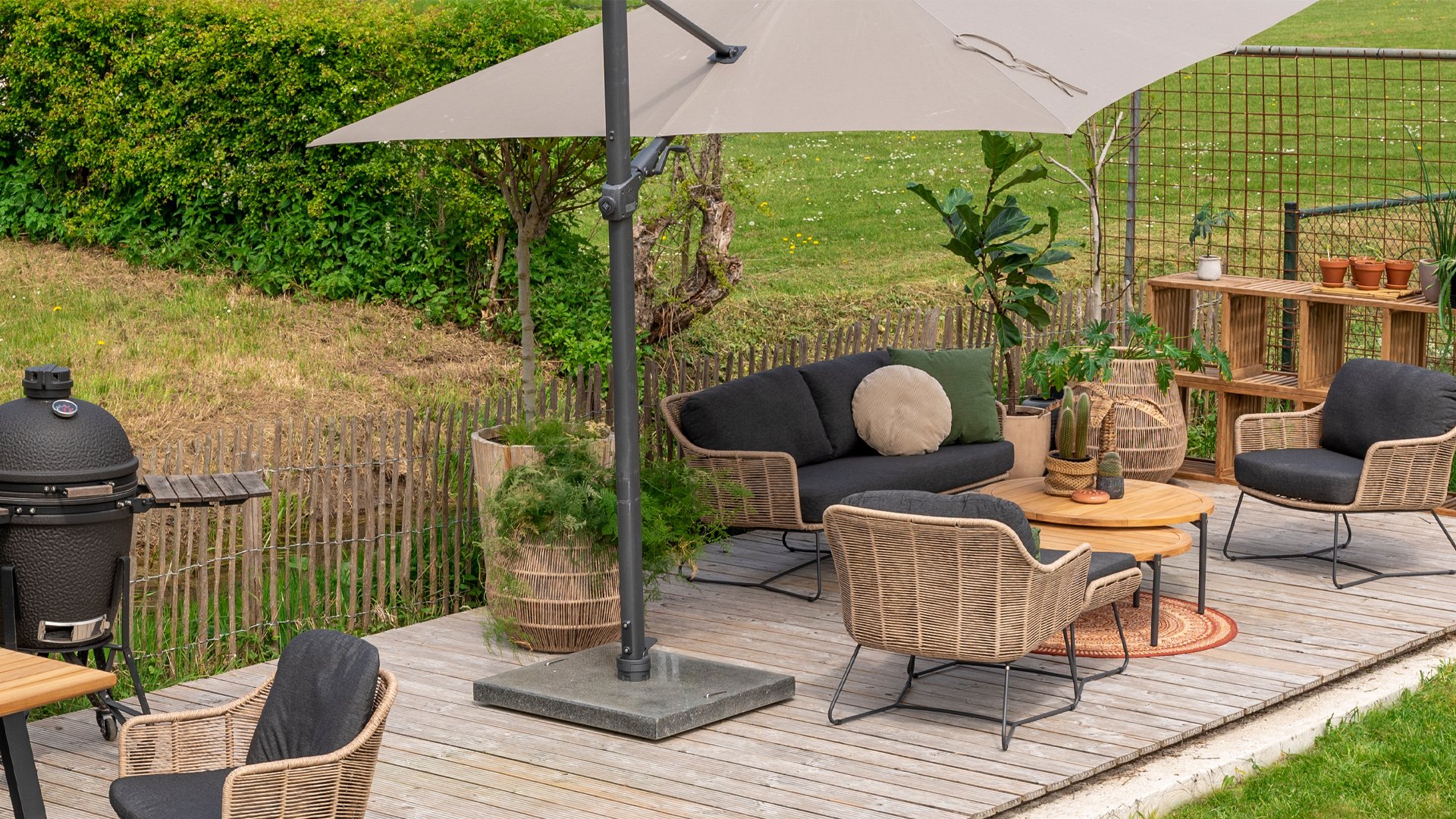Aluminum is very easy to maintain and lightweight, just like our wickerwork. This practical furniture is easy to clean. Our aluminum, with a sturdy powder coating, is weatherproof and UV-resistant. Aluminum is rust-resistant, timeless, and stylish.