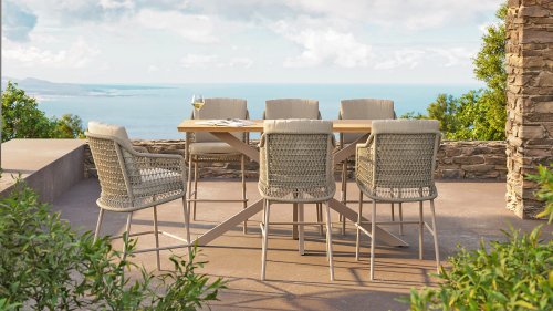 Seldom has a bar stool been as comfortable as the 4 Seasons Outdoor Tramonti bar stool. This bar stool comes with cushions and has a contemporary anthracite grey stainless steel frame with anthracite rope upholstery.