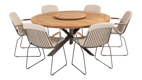 With the 4 Seasons Outdoor Veneto stackable dining chair, you add a touch of elegance and comfort to your outdoor space. A balanced design, where the seat and back cushion are one piece and you can easily slide it over the chair. Even without a cushion, the refined design of this chair is a feast for the eyes. Also, take a look at the olive variant of the Veneto dining chair.