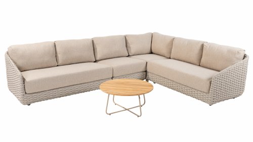 This beautiful material is perfect for outdoor use, because 4SO Rope is not just an shoelace. Our round wires have a synthetic core. This polypropylene base ensures minimal stretching of the rope and also does not absorb moisture. The covering is made of an acrylic fabric, similar to the weather-resistant fabric of our garden cushions. This covering feels soft but is highly water-repellent, UV-resistant, and colorfast. The flat rope variants have the same mix of weather-resistant materials, but the polypropylene material is interwoven with the acrylic fabric. This technique gives the flat rope the same properties but a completely different look. The stretch is minimal, and 4 Seasons Outdoor garden furniture with Rope is suitable for people weighing up to 110 kg. It's therefore an exceptionally strong material, but it's important to be careful with sharp objects. Our  Rope is weather-resistant, but a sharp object can seriously damage your garden furniture. We offer exclusive designs using hand-woven Rope patterns and techniques.