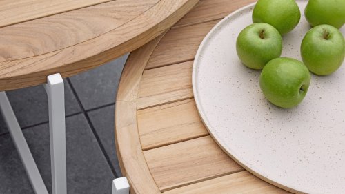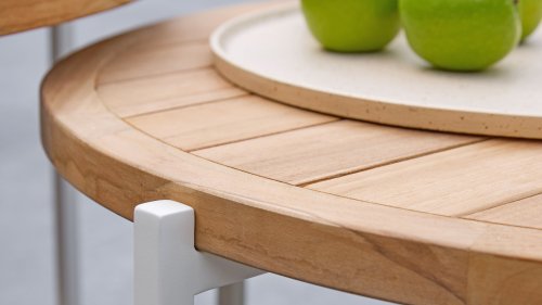 Discover Condor, the stylish coffee table series from Apple Bee that effortlessly combines design, durability, and functionality. The certified teak top gives each table a warm, natural look, while the powder-coated aluminum base provides a modern look.