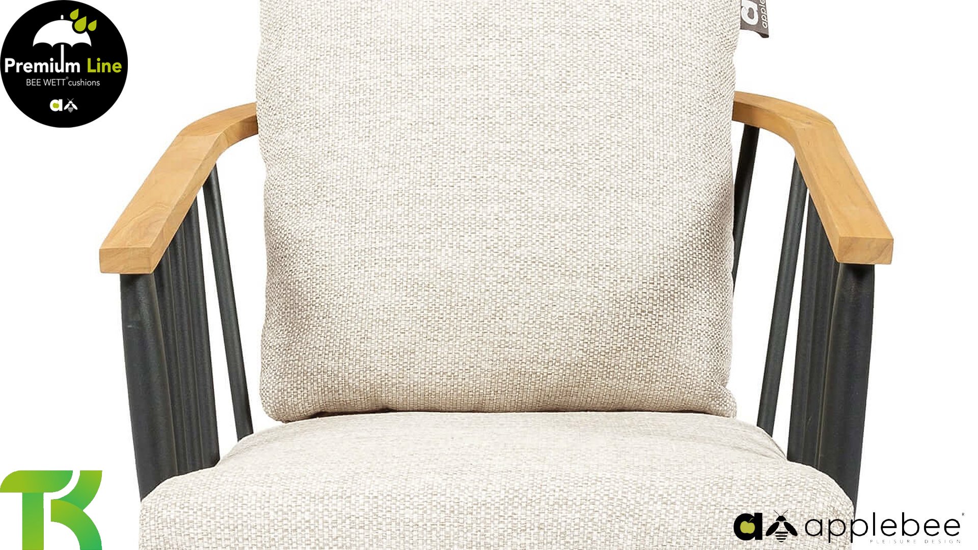 The Condor dining armchair comes with weather-resistant seat cushions. Naturally, they feature Apple Bee's famous BeeWett cushions for ultimate comfort! Apple Bee furniture is constructed from the finest materials, and this is especially true for the cushions. BeeWett cushions are special weather-resistant cushions that you can simply leave outside. The removable cover is made of the highest quality fabrics, all of which are washable. Besides being water-repellent, the fabric is also guaranteed UV-resistant. Unlike regular foam, the unique BeeWett filling doesn't absorb moisture. The open weave on the underside of the cushion ensures perfect drainage, ensuring your BeeWett cushion dries dramatically faster than other cushions. Furthermore, the Olefin fabric is rot and mildew resistant, UV-resistant, moisture-resistant, soft, and comfortable.