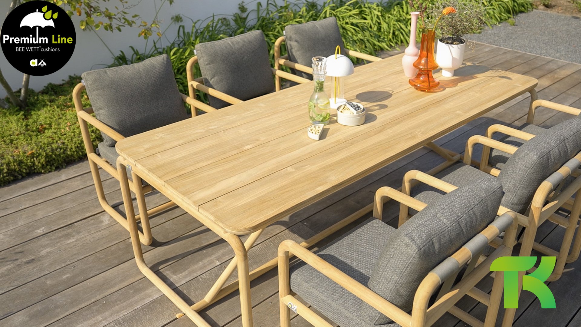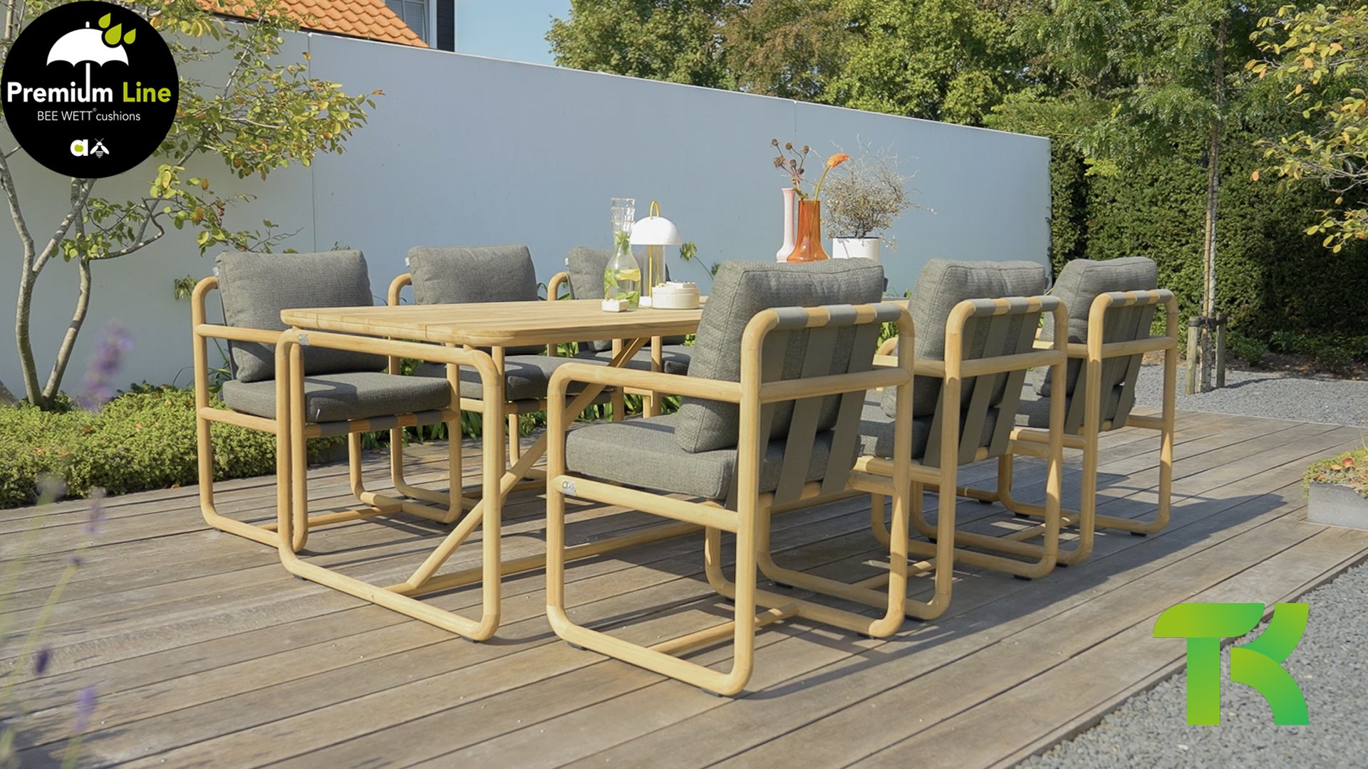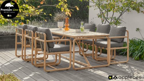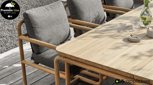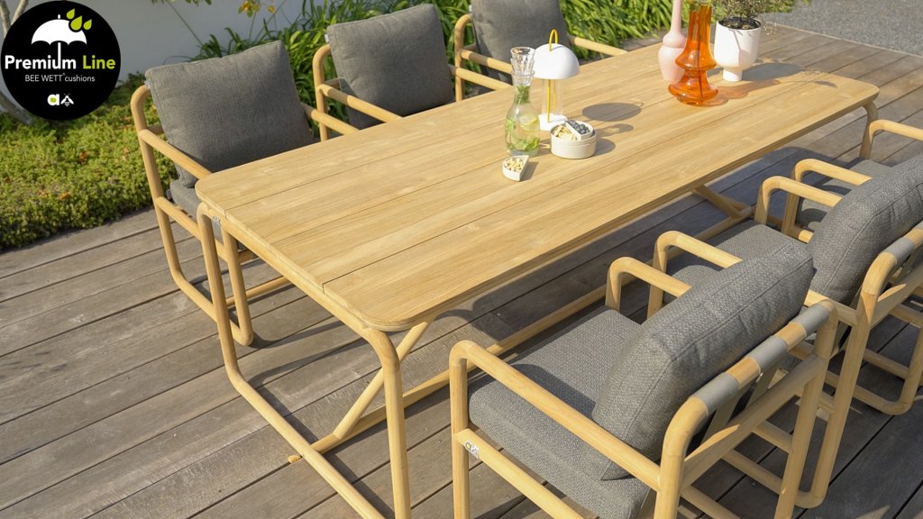 The cushions are available in Slate Grey and feature the renowned Bee Wett® technology. They have an Olefin cover that can be zipped off and washed at 30 degrees Celsius. This fabric is highly weather-resistant and durable. The Dolce is also available in Cotton Flower: Dolce Cotton Flower Lounge and Dining.