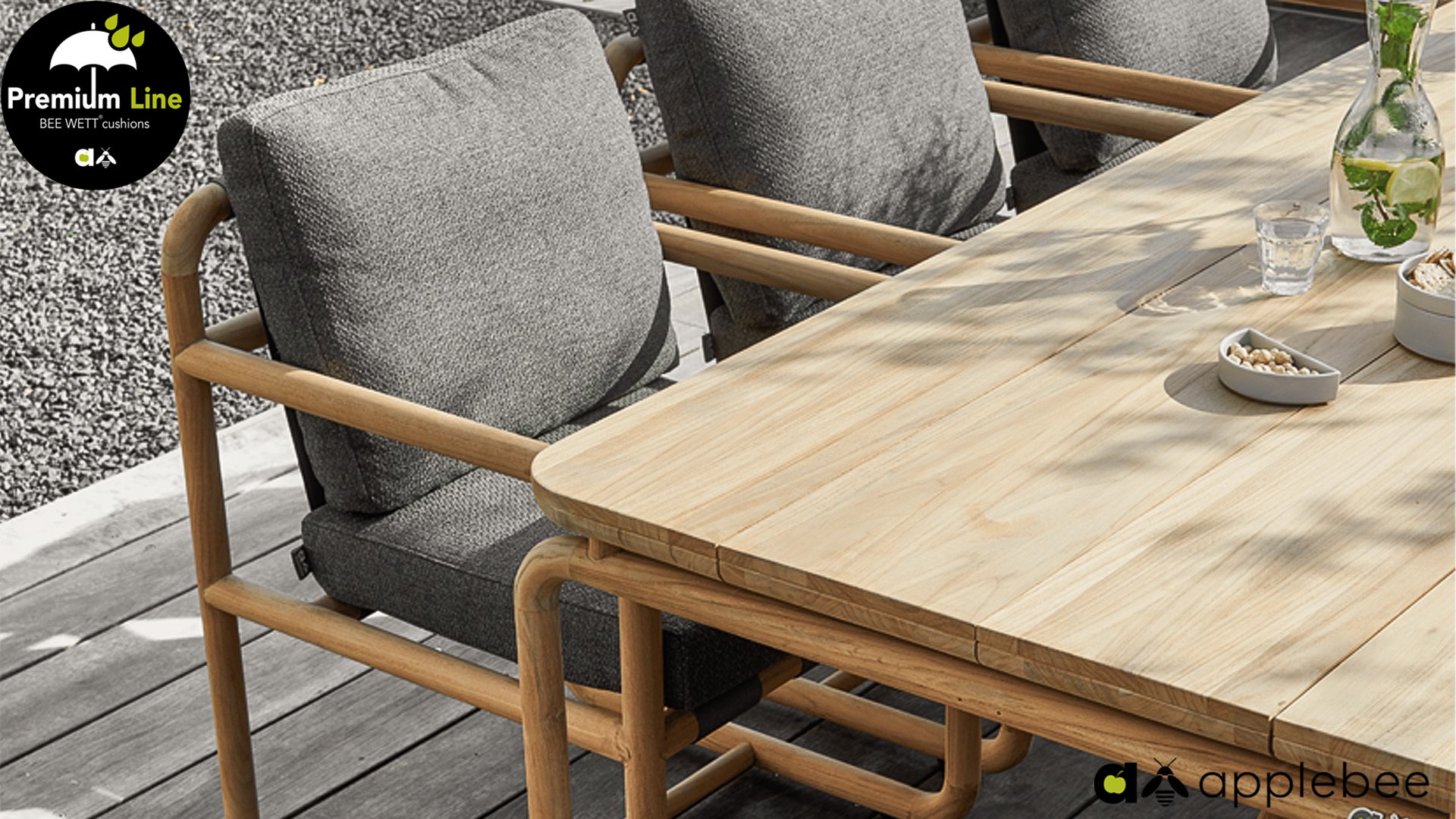 The Apple Bee BEE WETT cushions are special weather-resistant cushions. The removable cover can be washed up to 30º Celsius. The open weave on the underside of the cushion ensures perfect drainage. This results in significantly faster drying time for your BEE WETT cushion compared to other cushions. Additionally, the fabric is rot and mold resistant, UV-resistant, moisture-resistant, soft, and comfortable. The cover is removable and washable.
